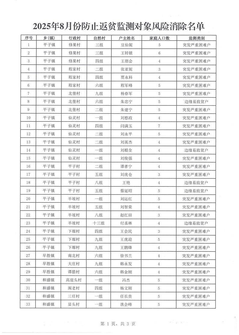 附件:2025年8月份防止返贫监测对象风险消除名单