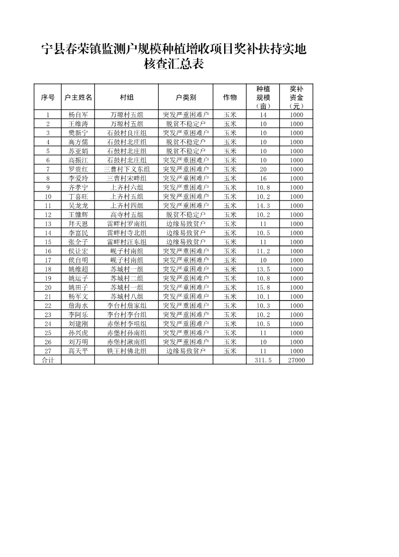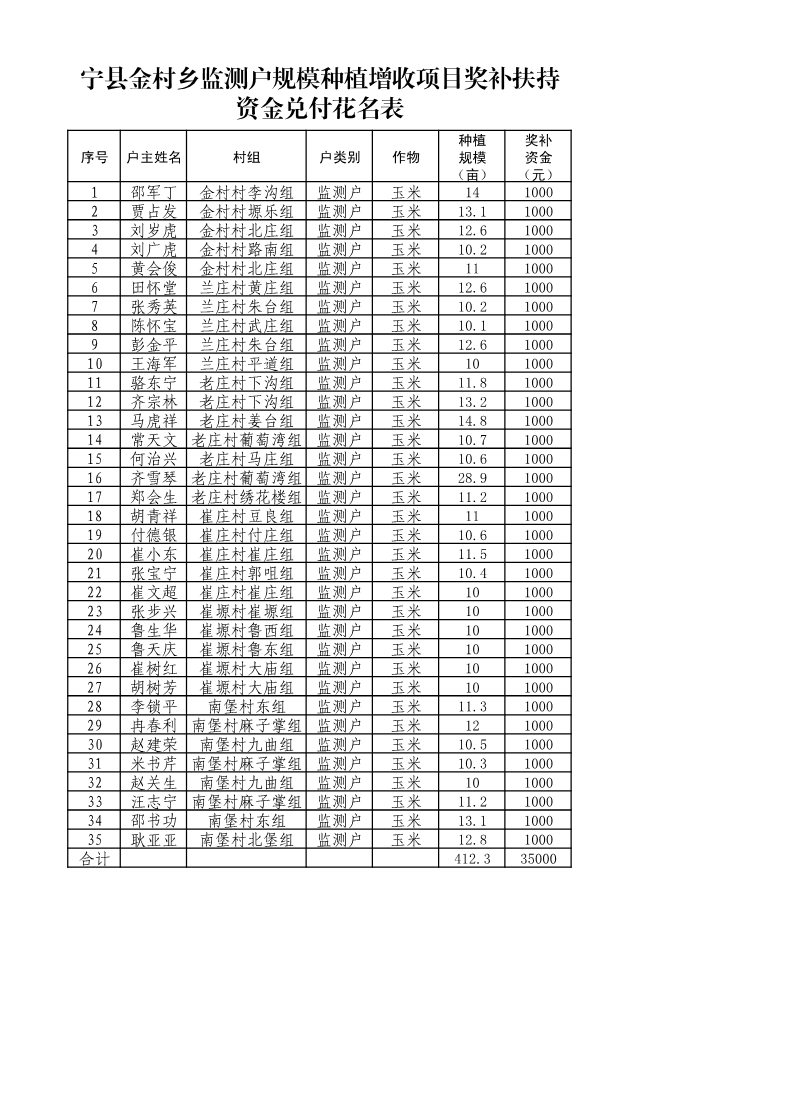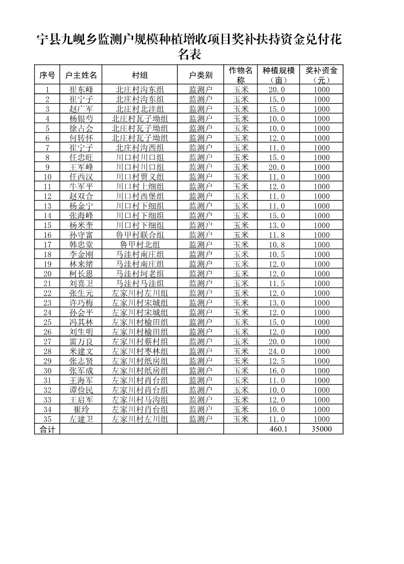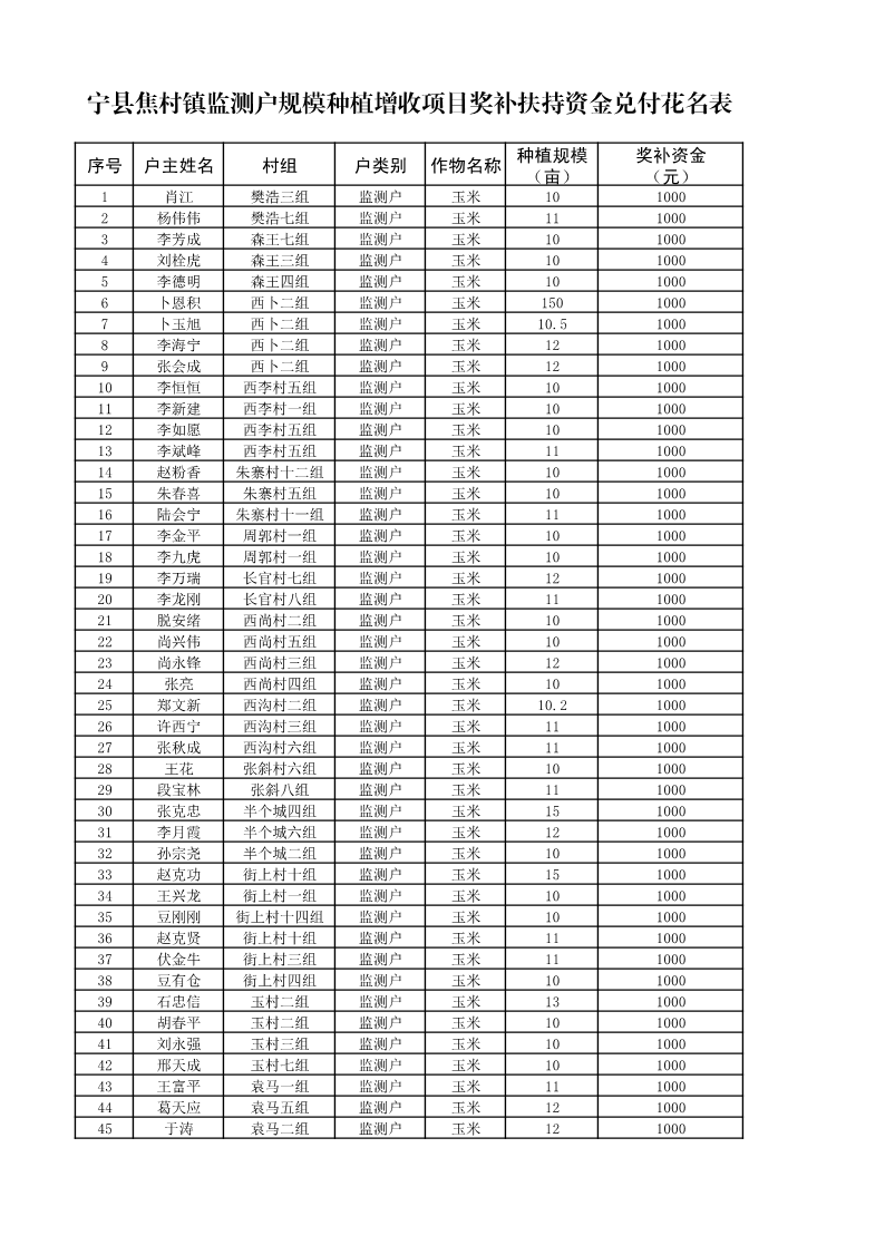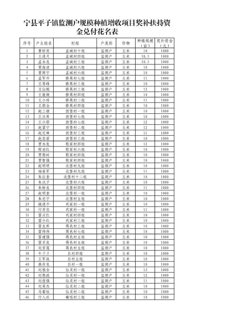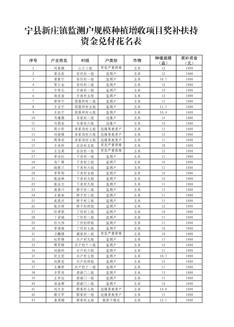 关于2025年宁县“监测户”规模种植增收项目第一批奖补资金情况的公示