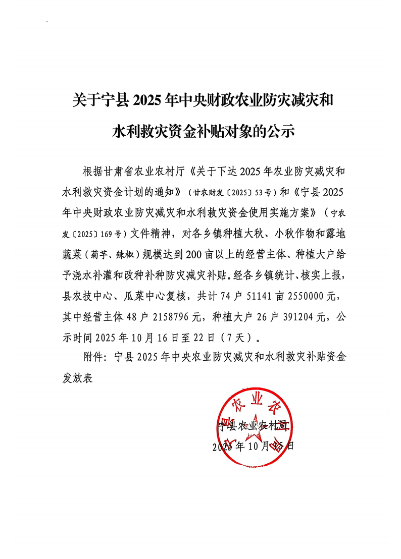 索引号: 621026nyncj000/20251016-00121 发布机构: 县农业农村局 生效日期: 2025-10-16 废止日期: 文 号: 所属主题: 乡村振兴 关于宁县2025年中央财政农业防灾减灾和水利救灾资金补贴对象的公示 来源:宁县农业农村局 发布时间:2025-10-16 浏览次数: 次 【字体:小 大】 智能标签: 关于 宁县 年中 财政 农业 相关内容 【打印正文】 分享到: 【字体:小 大】