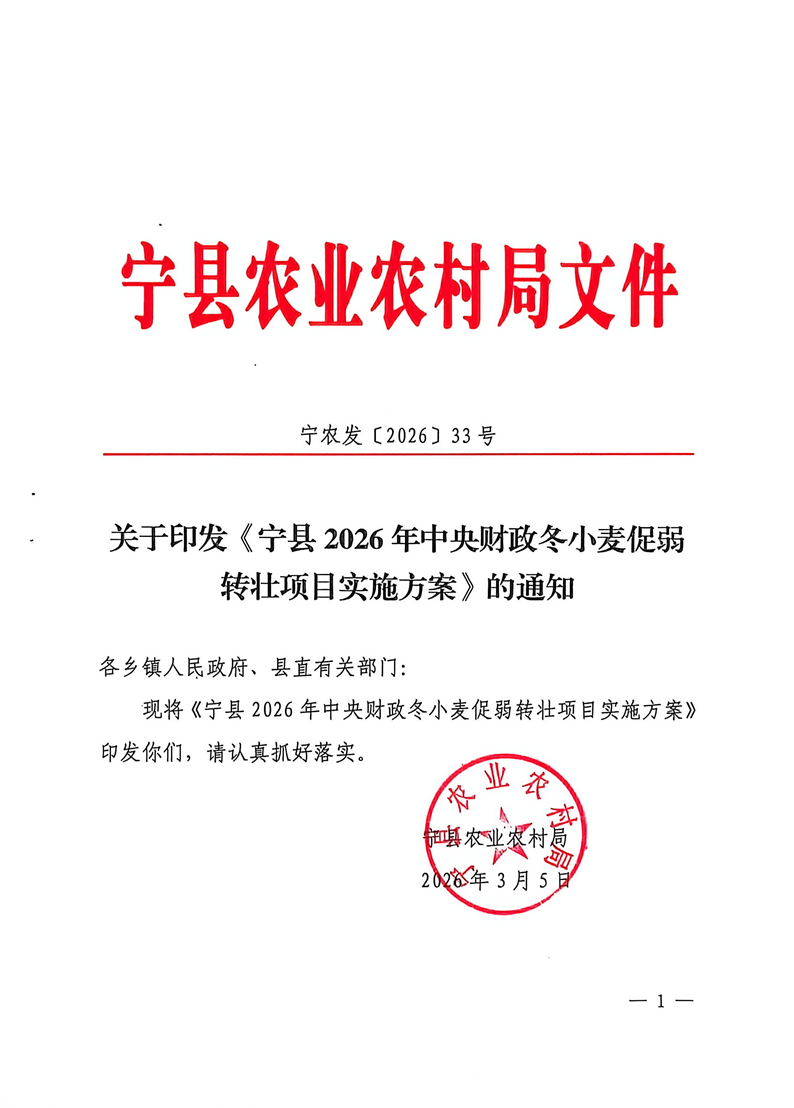 索引号: 621026nyncj000/20260311-00010 发布机构: 宁县农业农村局 生效日期: 2026-03-11 废止日期: 文 号: 宁农发【202】33号 所属主题: 乡村振兴 关于印发《宁县2026年中央财政冬小麦促弱转壮项目实施方案》的通知 来源:宁县农业农村局 发布时间:2026-03-11 浏览次数: 次 【字体:小 大】 智能标签: 关于印发 宁县 年中 财政 冬小麦 相关内容 【打印正文】 分享到: 【字体:小 大】