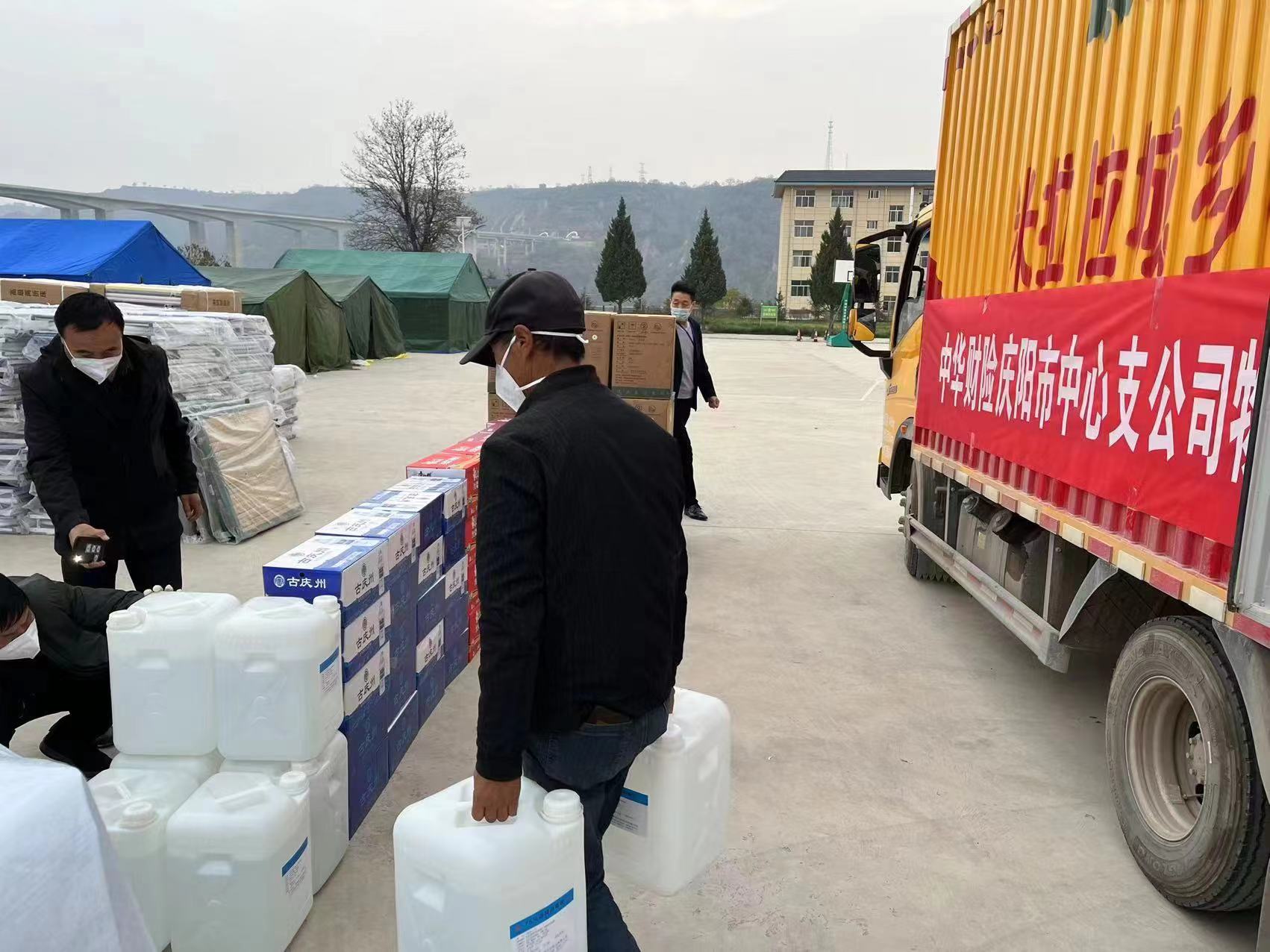 同心抗疫 共克时艰。10月26日,中华财险庆阳中支及宁县支公司全体员工积极筹措物资,以实际行动助力宁县疫情防控工作。