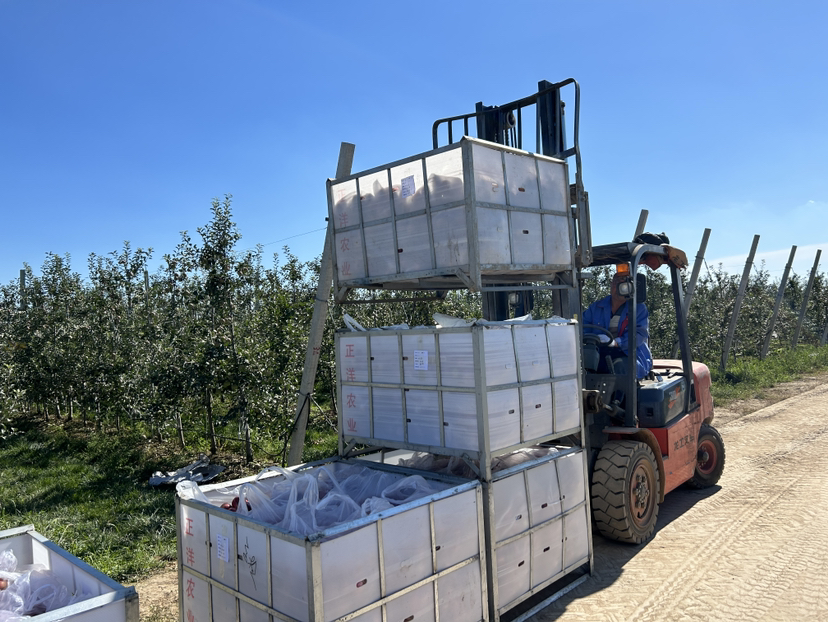 走进中村镇正洋苹果公园,连片的苹果树郁郁葱葱、枝繁叶茂,一颗颗熟透的苹果在阳光下泛着红晕,空气中弥漫着浓郁的果香,让人垂涎欲滴。工人们正忙着进行苹果采摘,分拣、装箱、运输,一派丰收的喜人景象。