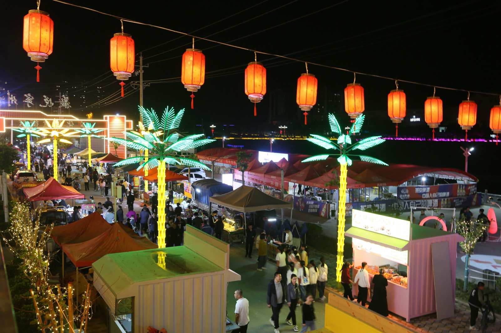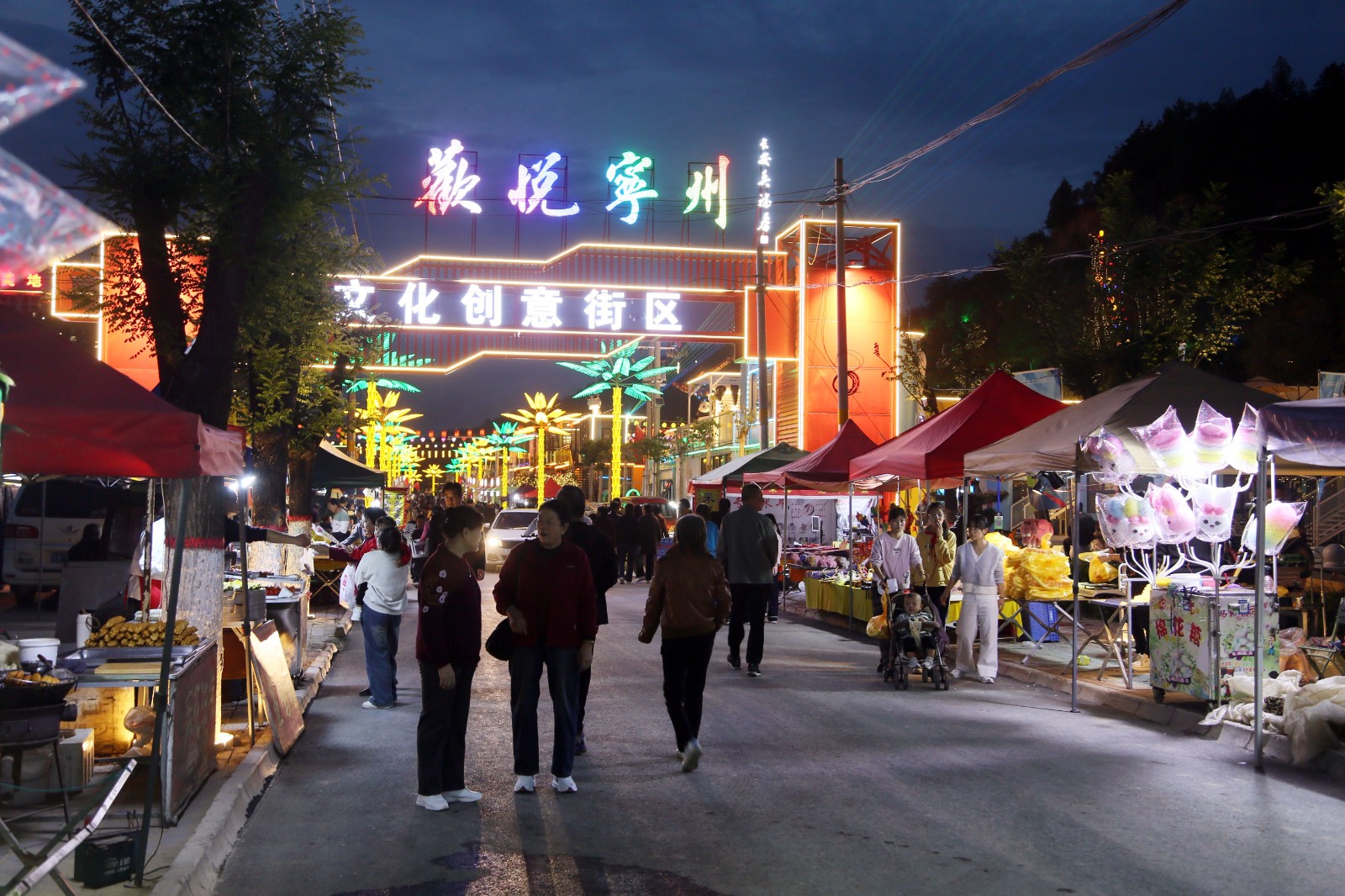 与此同时,街区另一侧的夜市也迎来了它最热闹的时刻。各色美食摊位前香气四溢,地方特色小吃、精致甜点、创意饮品琳琅满目,令人食指大动。游客们穿梭其间,或品尝美味,或挑选心仪的手工艺品,孩子们手持发光的玩具嬉笑追逐,勾勒出一幅充满烟火气的动人画卷。传统与潮流在此交汇,历史与现代在此共鸣,充分展现了宁县文旅融合发展的蓬勃生机与无限活力。