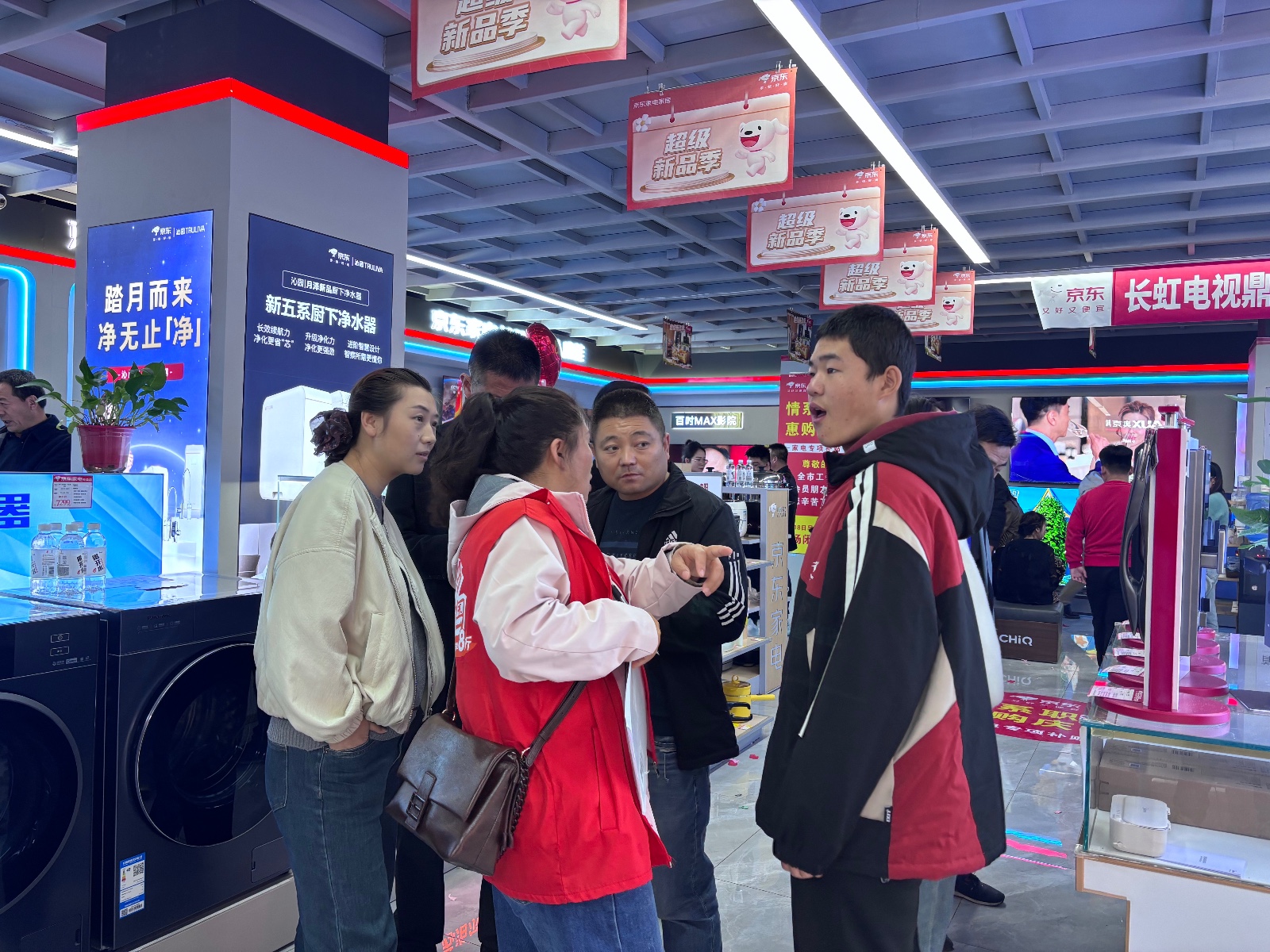 活动当天一早,众多消费者涌入卖场,各品牌展区前人头攒动,销售人员耐心细致地为消费者介绍产品性能与补贴细则。
