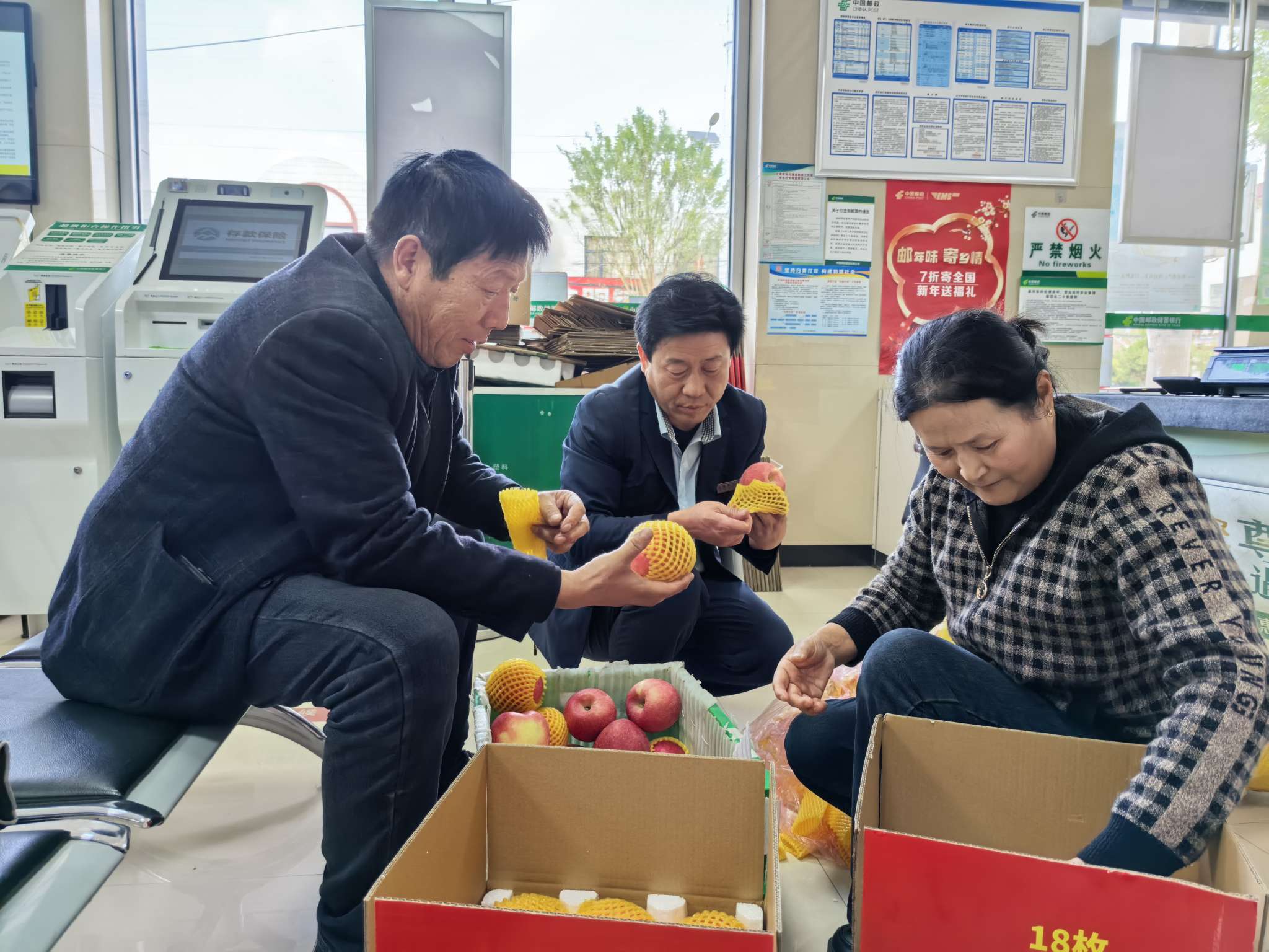 在湘乐邮政所,投递员王斌正在将今天揽收回来的苹果做最后的整理工作,不时还有个别群众前来寄递苹果,询问价格,王斌都耐心地接待他们。为了更好地服务当地果农、果商,宁县邮政推动“线上+线下”渠道融合,利用邮政网络优势打通多种销售渠道。依托邮政物流体系,联合电商企业,让苹果从田间地头直达客户手中,打破“最后一公里”瓶颈。在为果农、果商打开销路的同时,降低了电商企业运营成本,进一步拓宽了农产品进城渠道。