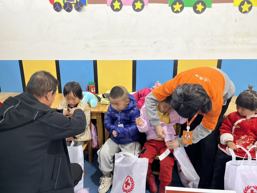 宁县红十字会携手爱心企业 爱心人士为坳马幼儿园送去冬日温暖