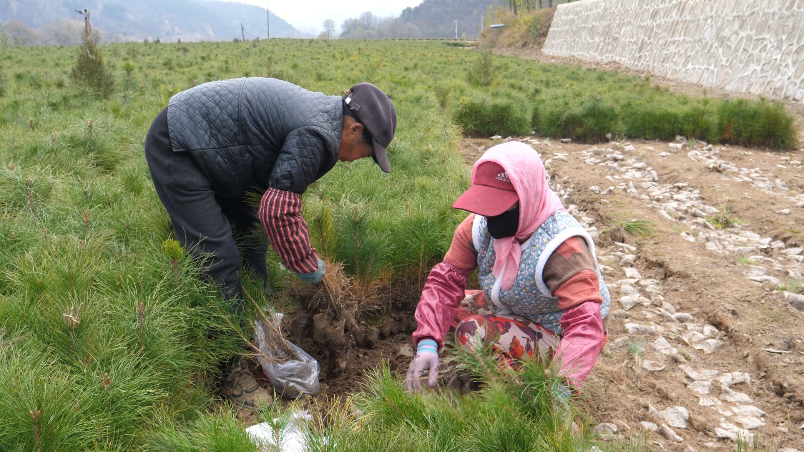 (全媒体记者 陈龙)初冬时节,走进甘肃省子午岭林业管理局宁县分局桂花塬林场的苗木培育基地,一株株油松苗依然青翠挺拔,焕发着勃勃生机。田间地头,林场职工与群众正忙着起苗、装袋、转运、装车……现场一派繁忙景象。