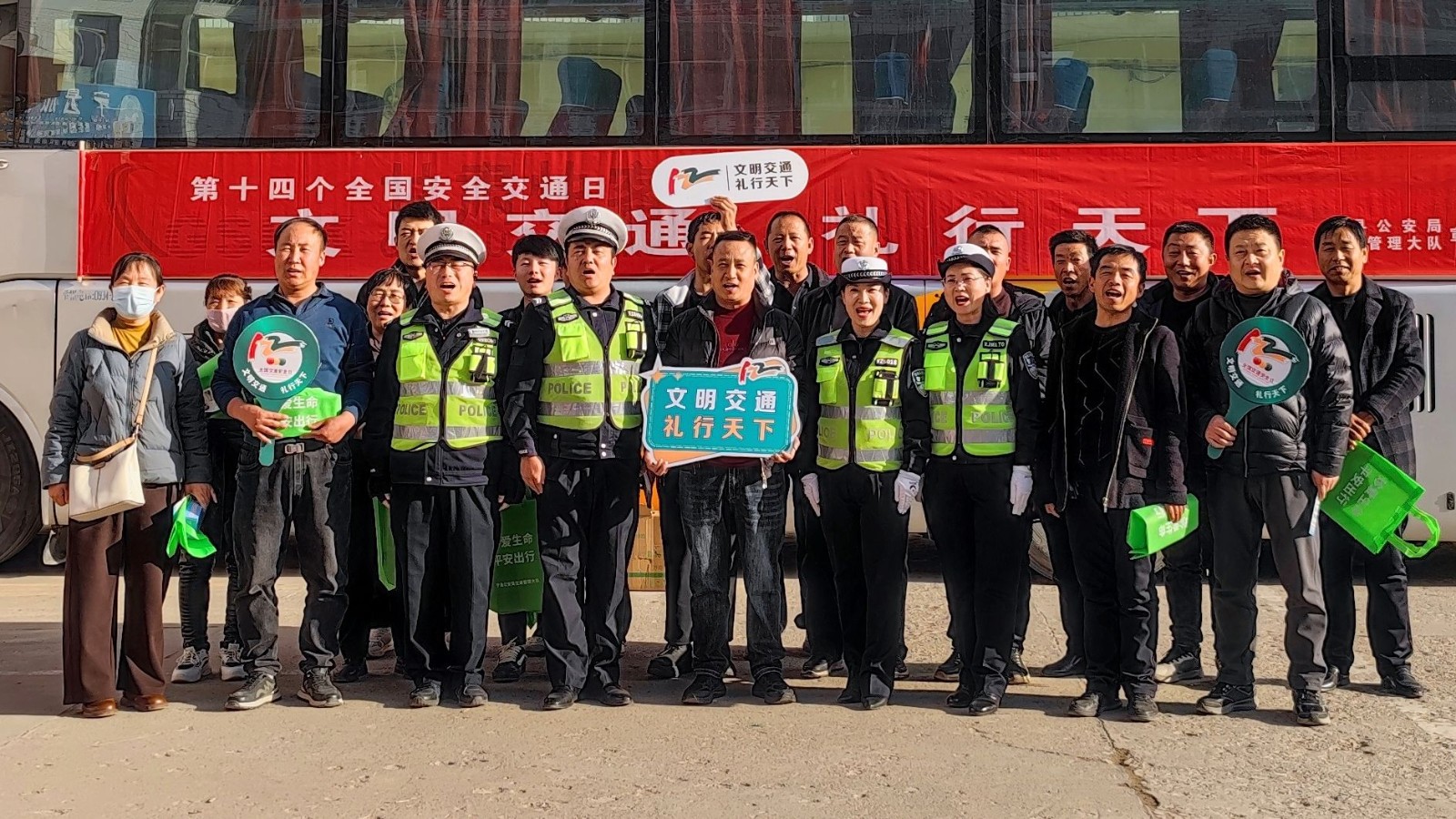 (全媒体记者 万欢欢)为迎接第十四个122“全国交通安全日”的到来,12月1日,宁县公安局交通管理大队在县客运中心开展了以“文明交通 礼行天下”为主题的宣传活动,倡导文明交通礼让之风,营造全社会共同关注交通安全的浓厚氛围。