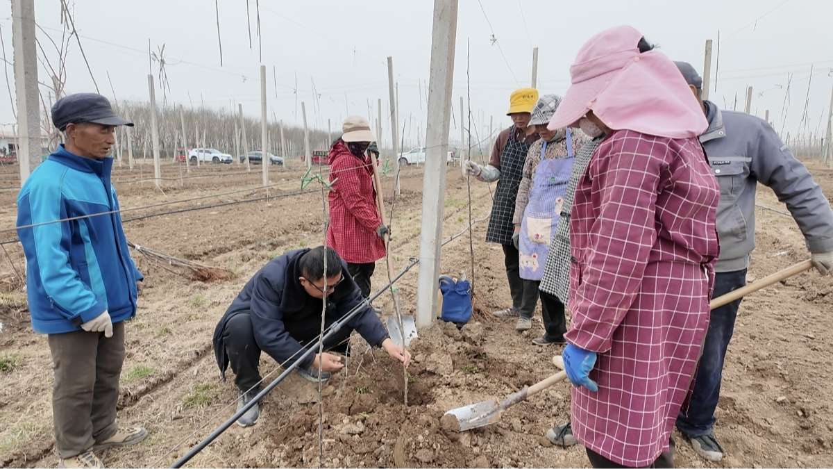 眼下,早胜四区苹果重茬建园项目现场一派繁忙。200多名务工人员分工协作,挖坑、扶苗、填土、浇水,抢抓有利时节栽植优质果苗。现场技术人员手把手指导栽植要点,确保苗木成活率;拖拉机、灌溉车等农机具穿梭作业,机械化与人工种植高效配合,推进建园进度。