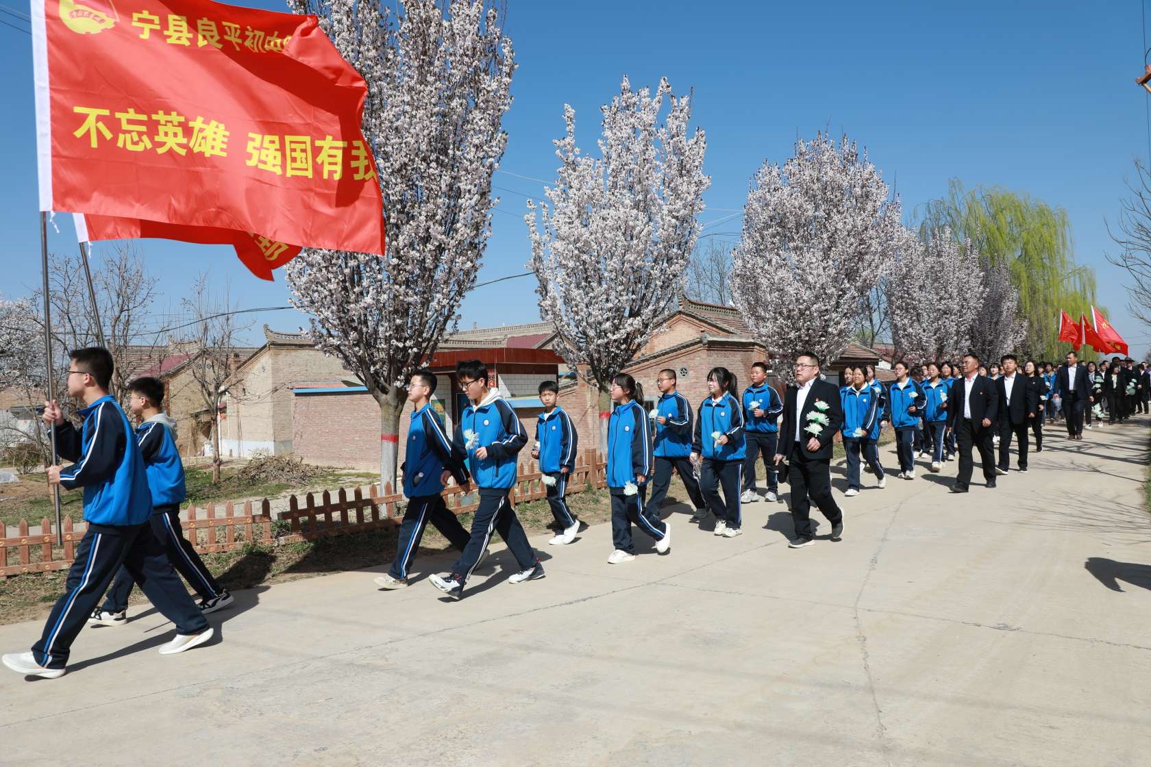 4月1日,宁县组织开展“清明祭英烈 重走长征路”主题徒步祭扫活动,前往平子镇北堡村何万祥故居缅怀革命先烈。