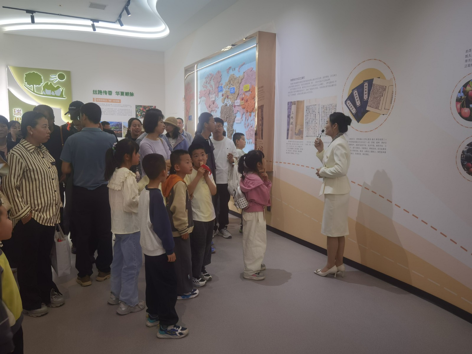 在正洋苹果科普馆,图文展板、实物模型及多媒体互动,让大家系统了解苹果的历史文化、品种特性与现代种植技术,感受现代农业的科技魅力;非遗文创体验环节,剪纸、刺绣等传统手工艺制作,让孩子们近距离感受本土非遗文化的魅力;亲子共读活动精选苹果生长、农耕劳作等题材,亲子家庭共读分享,在文字与自然的交融中留存下温馨的美好瞬间。