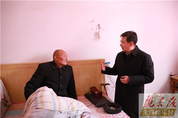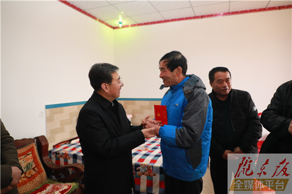 今年82岁的李满田是宁县和盛镇人,1956年入党,现患有高血压、颈椎病等慢性病,妻子、儿子均患病在家,生活困难。1月20日,董建镇来到李满田家,亲切地询问了老人的身体状况,向他送上慰问金并叮嘱他要好好保重身体。董建镇说,老党员为党和人民事业作出过贡献,是我们党的宝贵财富,要妥善照顾好老党员的生活,及时帮助他们解决遇到的困难和问题,让他们安享晚年。