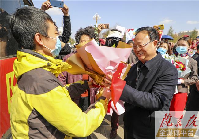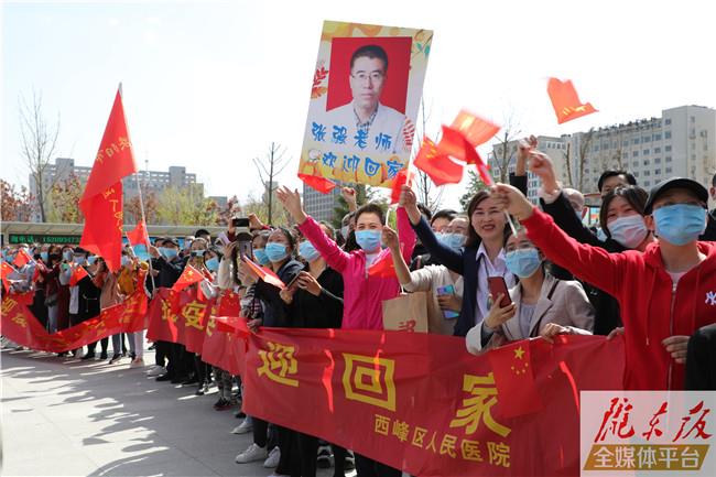 4月8日,我市第六批支援湖北医疗队张强、刘娟、彭玉峰、金一奇4名队员在兰州结束医学隔离后返回庆阳。市委、市政府举行隆重欢迎仪式,以最高礼遇迎接“白衣战士”凯旋。