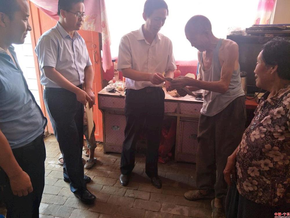 市民政局看望慰问春荣镇抗战老兵 来源:春荣镇人民政府 作者:柴都 发布时间:2018-08-02 00:00:00 浏览次数: 次 【字体:小 大】 7月28日,市民政局副局长连锴、县民政局局长张鹏飞一行看望慰问了春荣镇抗战老兵姚周堂、参战人员李振财,向他们表达了诚挚的问候,送去了八一节的祝福,并嘱咐他们要保重身体。在与老战士促膝交谈中,一起回忆了抗日战争时期的峥嵘岁月,同时慰问组一行还关切地询问了他们的生活起居、身体状况和家庭情况。 春荣镇镇长石博、民政站站长杨小刚一同慰问。 打印正文