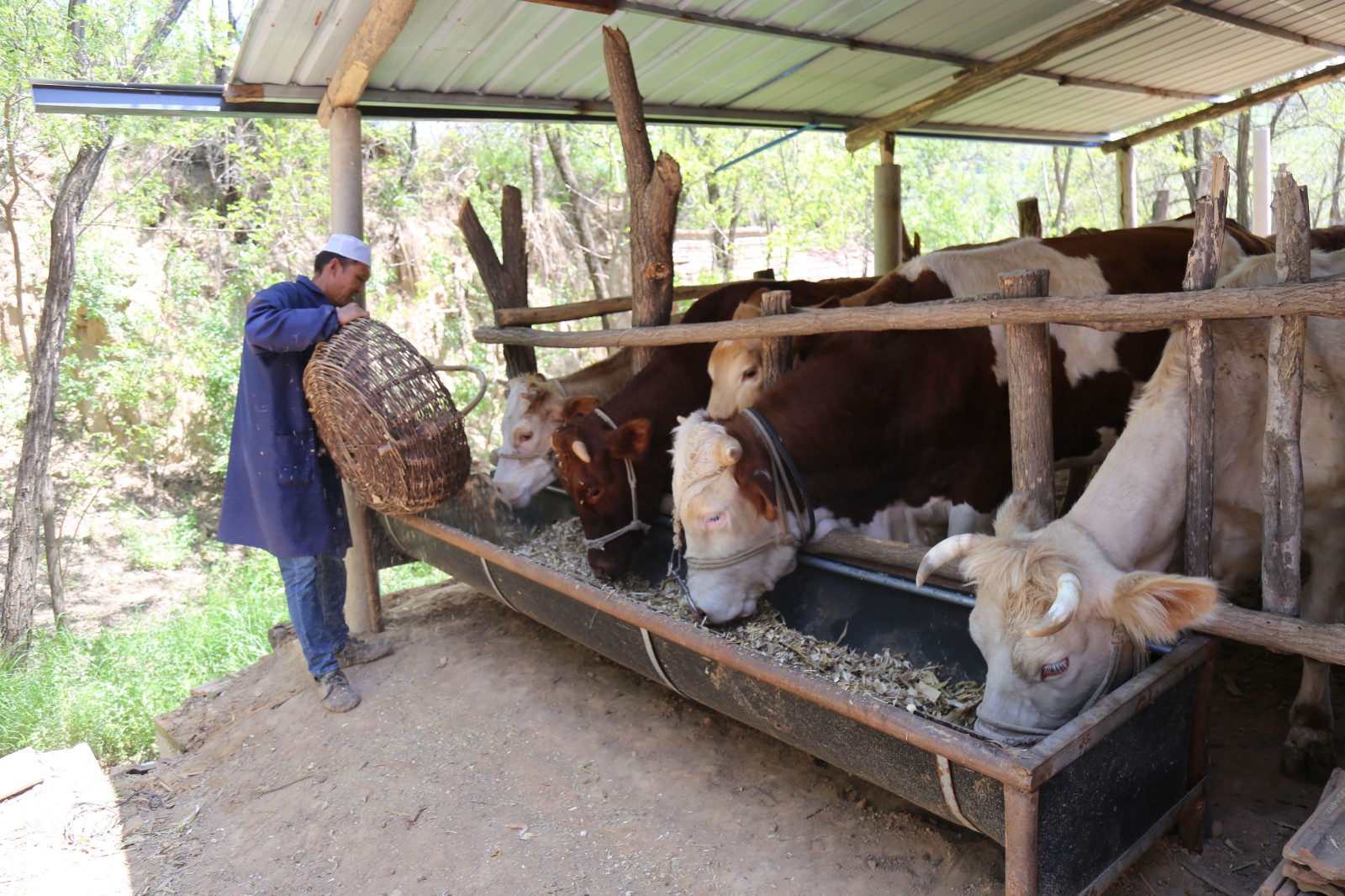 左家川村宋城组村民孙春洋就是这种种养模式的受益者,循着浑厚的“哞哞”牛叫声,记者找到了正用去年储存的玉米秸秆喂牛的孙春洋,随着一筐筐草料倾倒进牛槽,牛舍里一头头肉牛一拥而上,悠闲地吃着草料。采访中记者了解到,孙春洋饲养了14头西门塔尔牛,是当地的养牛大户,已有七八年的养牛经验,为了降低养殖成本,解决饲料不足的问题,他种植了一体化粮饲玉米30亩,每年一部分的玉米直接青贮作为肉牛的“冬口粮”,待其他玉米成熟后,玉米秸秆粉碎打块作为草料,玉米棒除了留足自家养牛所需的部分,多余的还可以出售。