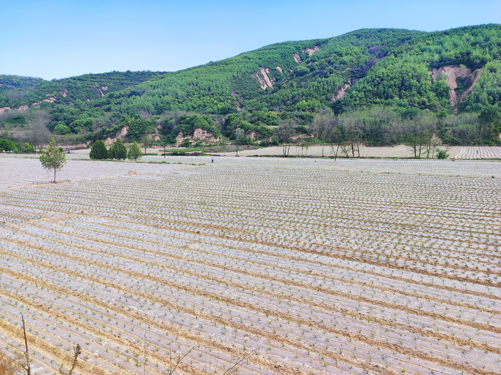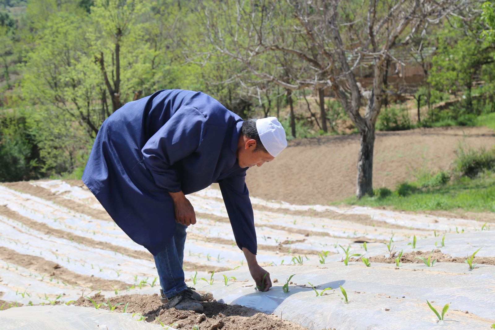 初夏时节,温暖的阳光洒照着大地,走进宁县九岘乡,铺满山川的地膜玉米幼苗迎着阳光伸展着叶片,喜人的苗情让农民干劲倍增,清除田间杂草,及时进行田间查苗,适时放苗,一个个忙碌的身影在田地中辛勤的劳作。