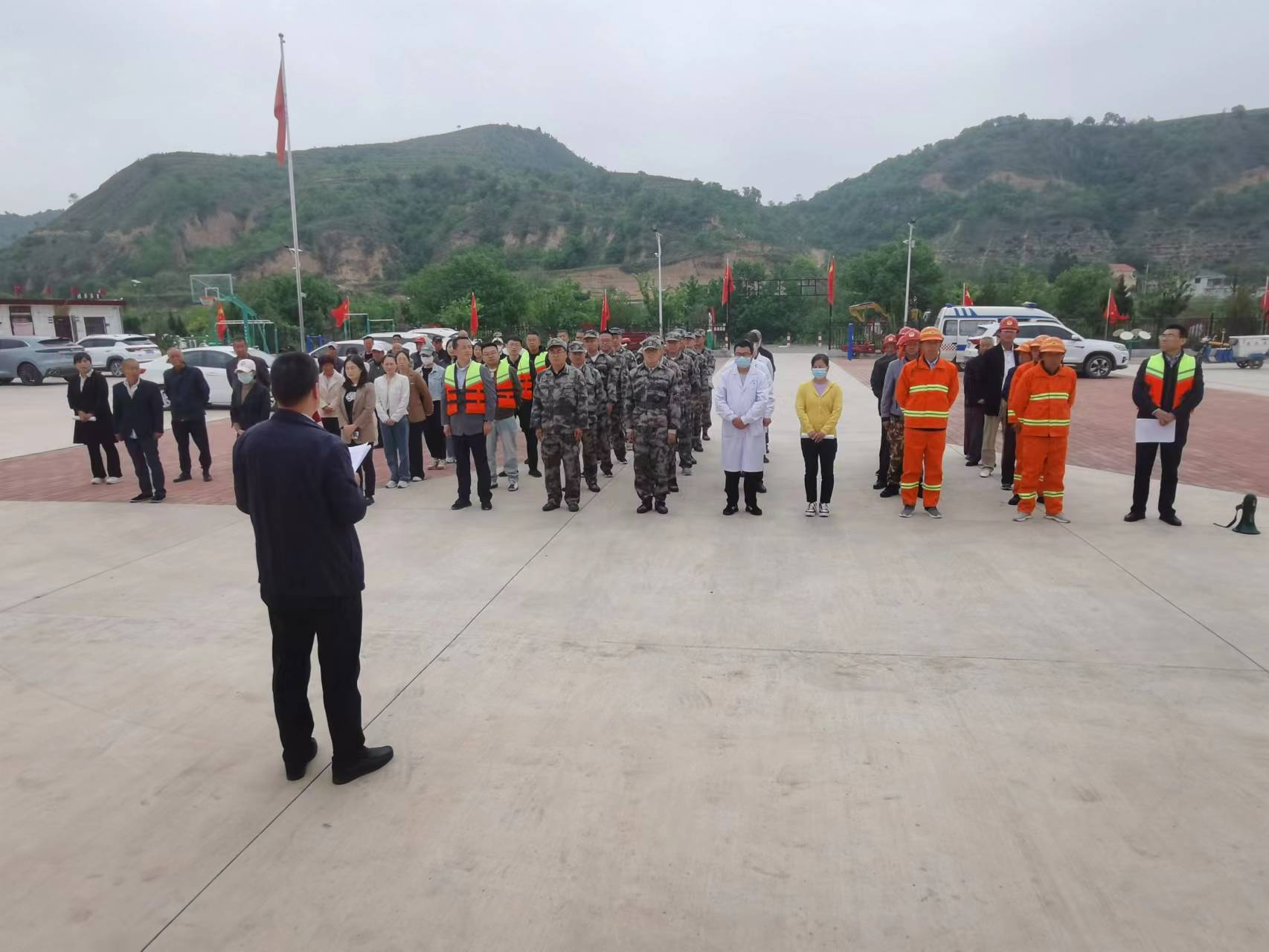 演练以受连续强降雨,叶王村东沟组山体滑坡,交通阻断,群众被困为背景,镇政府接到险情报告后,防汛指挥部及时分析灾情,并汇报至县防汛指挥部同意,紧急启动《长庆桥镇防汛应急预案》Ⅱ级响应,防汛抢险应急分队第一时间集结,按照职责分工,医疗救助组、交通保障组、后勤保障组、治安保障组等立即奔赴现场,开展抢险救援。