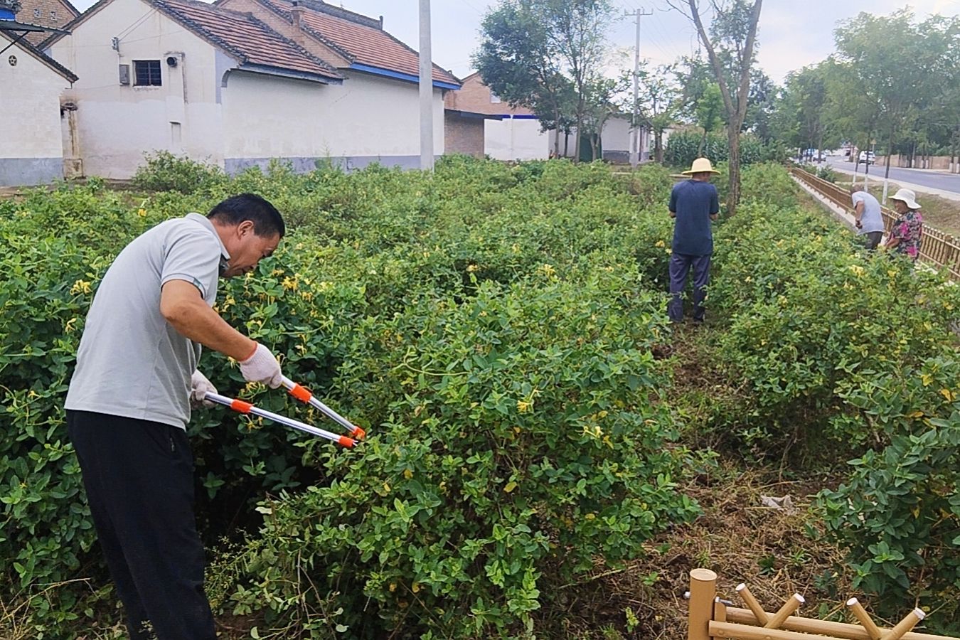 金银花要高产,花蕾要优质,科学管护是关键。当前,金银花已进入秋梢生长期,也进入秋季管护关键期。镇政府集中购置10台旋耕机投入到宁五公路沿线各村,主要用于金银花土地旋耕、施肥。各村金银花种植户对已经结束开花的地块,进行除草和秋施肥,对前期因暴雨、大风导致的倾斜、倒伏的花株进行插杆扶正,对徒长的枝条、花期过后的残花以及夏梢轻剪整形,解除顶端优势,促进侧枝(秋稍)的生长。剪去的符合条件的枝条交给合作社,农民还可以多一份收入。