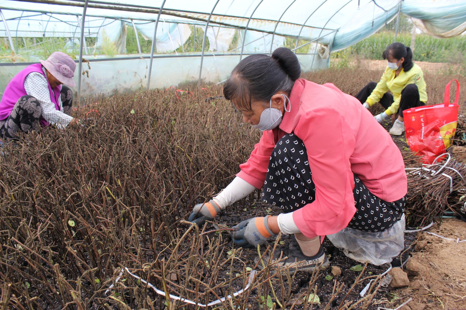 幼苗的质量,是金银花成活率甚至是否能高产的决定因素。走进谷和春金银花育苗基地,工人们正忙碌的摆盘、扦插,所有农户卖给合作社的枝条经过营养液的精细管护,都被一根根插入摆好的营养包中。据合作社负责人白亚莉介绍,今年秋季金银花育苗量增大,部分枝条是经过优质筛选,专门从山东调运回来的。