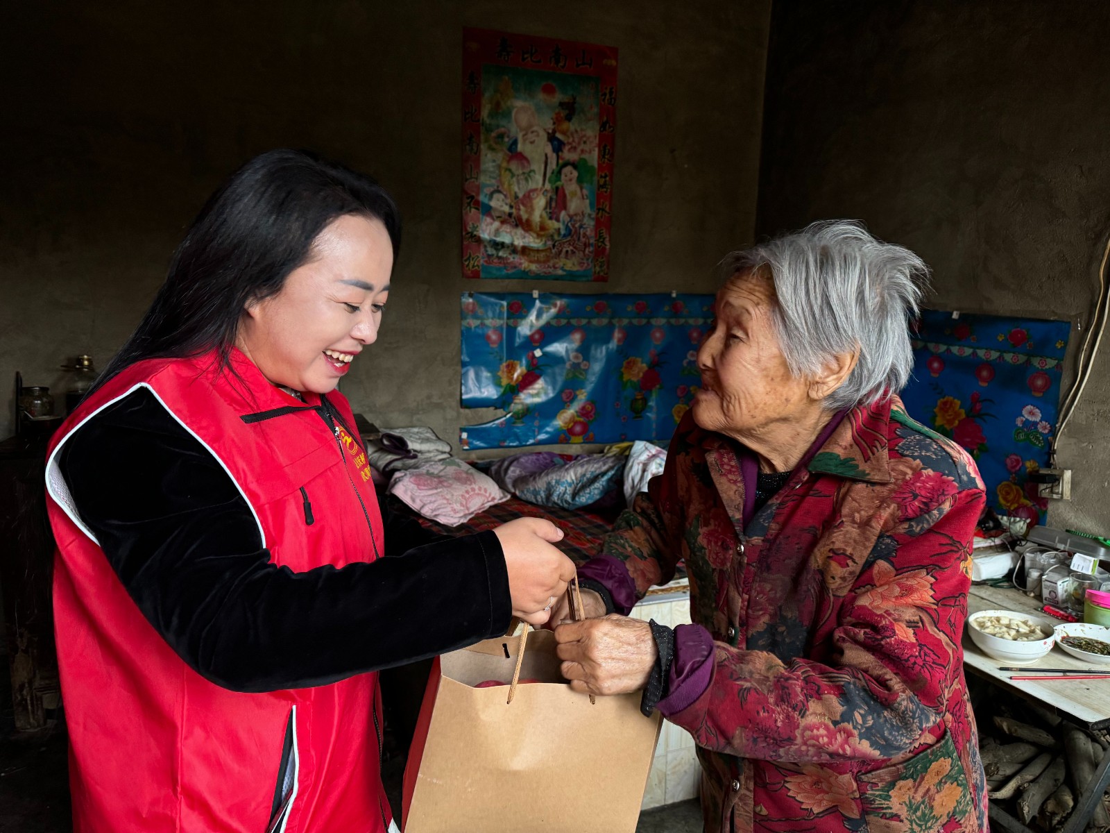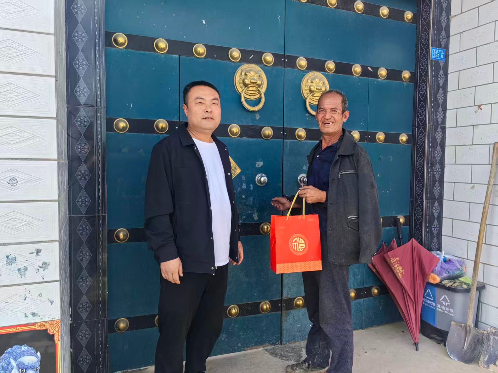 村支书与志愿者组成“入户小分队” ,为视力模糊、腿脚不便的独居老人送上软质月饼,同步检修家中照明设备。“麻烦你们了,你们比儿女想得还周到!”——老人紧握志愿者双手致谢。