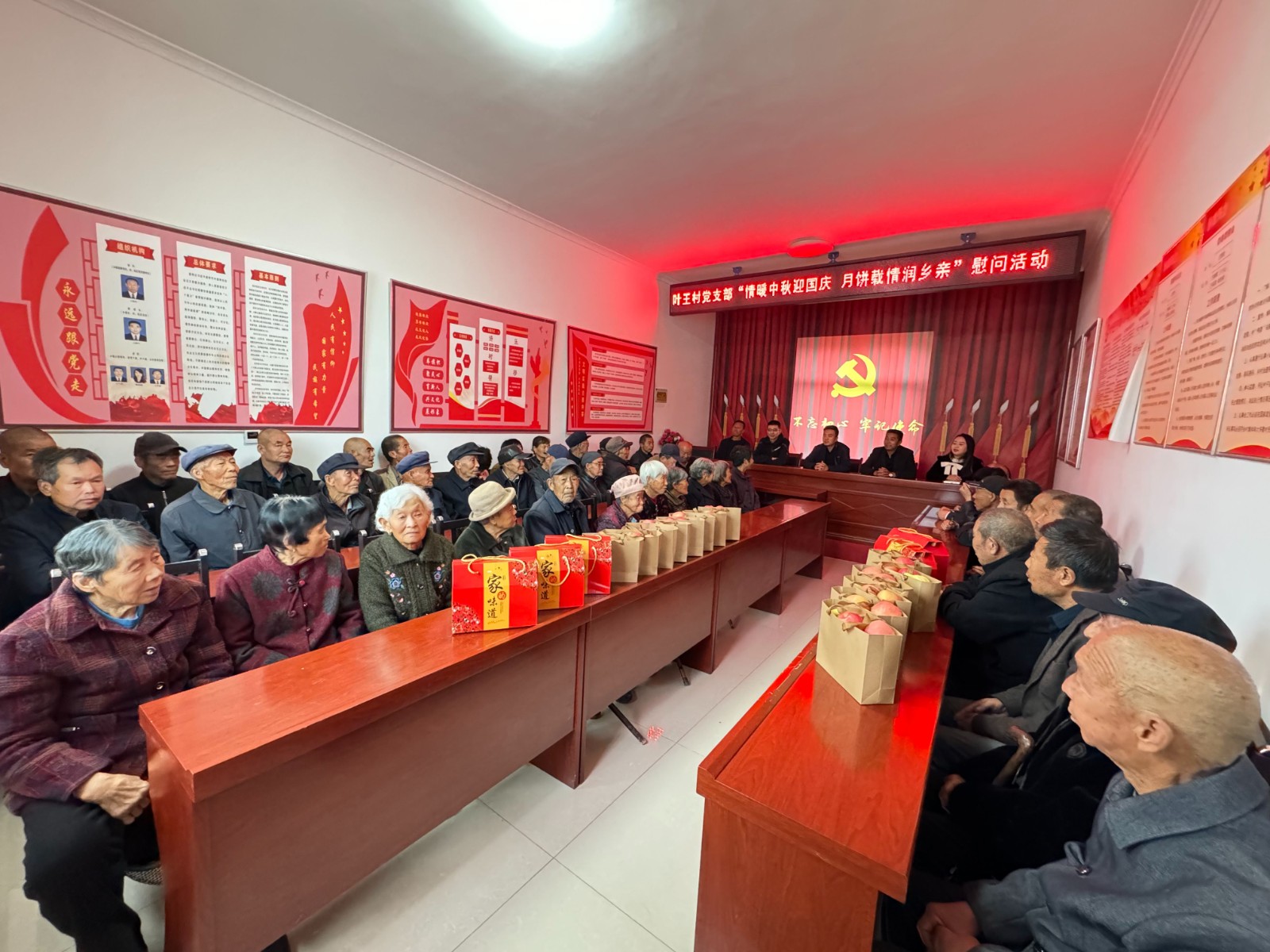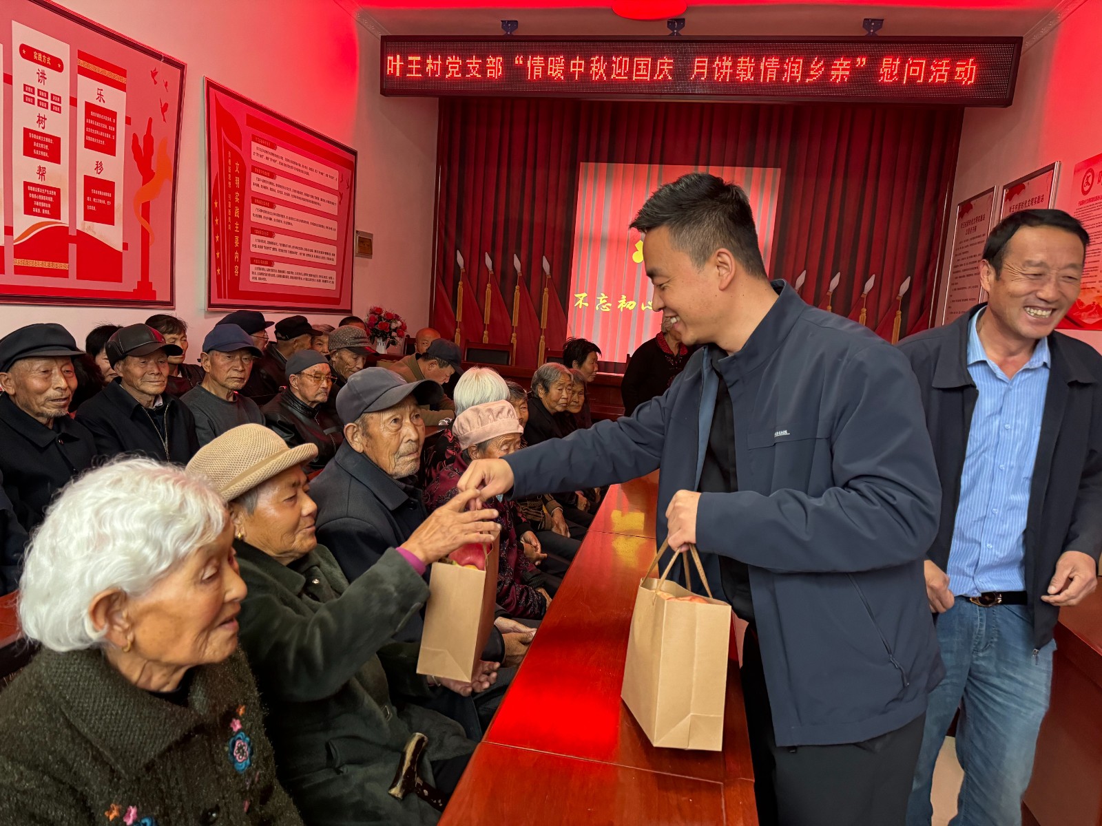 叶王村聚焦村内 80岁以上老人,特邀6名老党员作为代表参与村部集中慰问。现场发放手工月饼、苹果、香蕉等应节礼包33份,传递“团圆安康”的美好寓意。