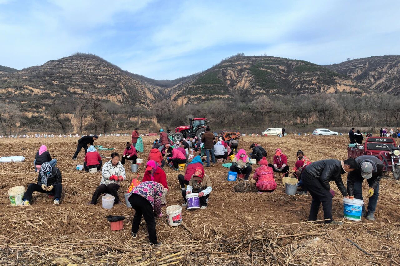 洋姜丰收的背后,是春荣镇盘活土地资源、发展村集体经济的精准实践。近年来,该镇立足本地土地优势,通过统一品种、统一管理、统一销售的模式,将昔日零散、机械难进入的闲置农田,打造成规模化的洋姜、红薯种植基地,让“沉睡的土地”变身“聚宝盆”。据统计,昔沟村 800亩洋姜今年预计总产量达 200万斤,总产值 230万元,这笔收入将用于完善村内基础设施、改善人居环境,形成“集体增收、村民受益”的良性循环。