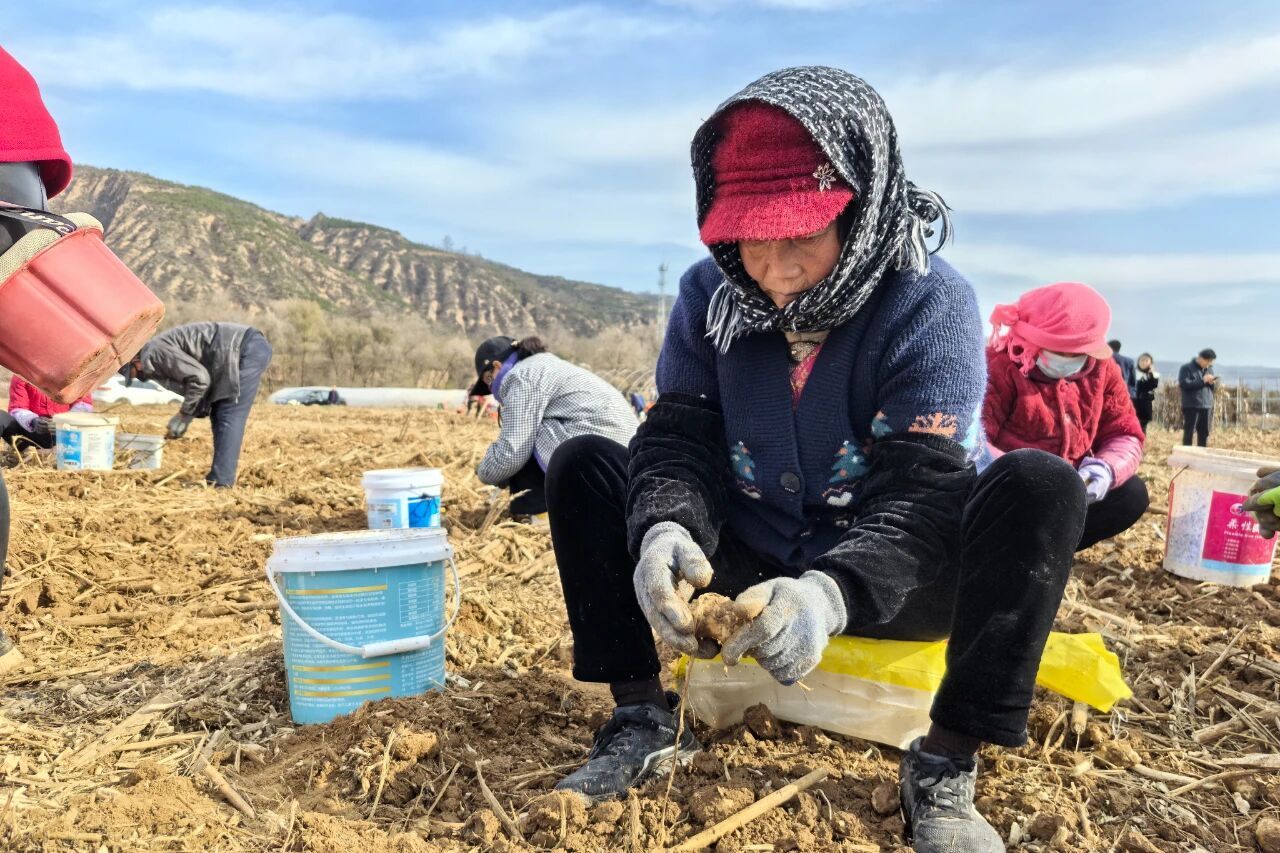 (全媒体记者 曹康 通讯员 李雪凤)立冬时节,陇东大地寒意渐浓,但宁县春荣镇昔沟村的集体洋姜种植基地里,却是一派热火朝天的丰收图景。大型挖掘机械穿梭田间,铁铲翻土间,一颗颗饱满圆润的洋姜破土而出,散发着新鲜的泥土气息。田埂上,180余名周边群众分工协作,抖土、分拣、装筐、封口,动作麻利娴熟,沉甸甸的包装袋整齐码放,等待客商上门,欢声笑语在田野间久久回荡。