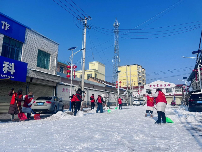 行动中,重点清理集镇街区、主干道、坡道弯道等事故易发路段,按照“先主干、后次巷”原则分工推进。寒风凛冽,志愿者们手持铁锹扫帚,铲冰清雪、撒防滑沙、协助交通,在雪地中筑起“红色防线”。同时,工作人员开展“敲门行动”,为独居老人、留守儿童等群体排查安全隐患、清扫门前积雪。
