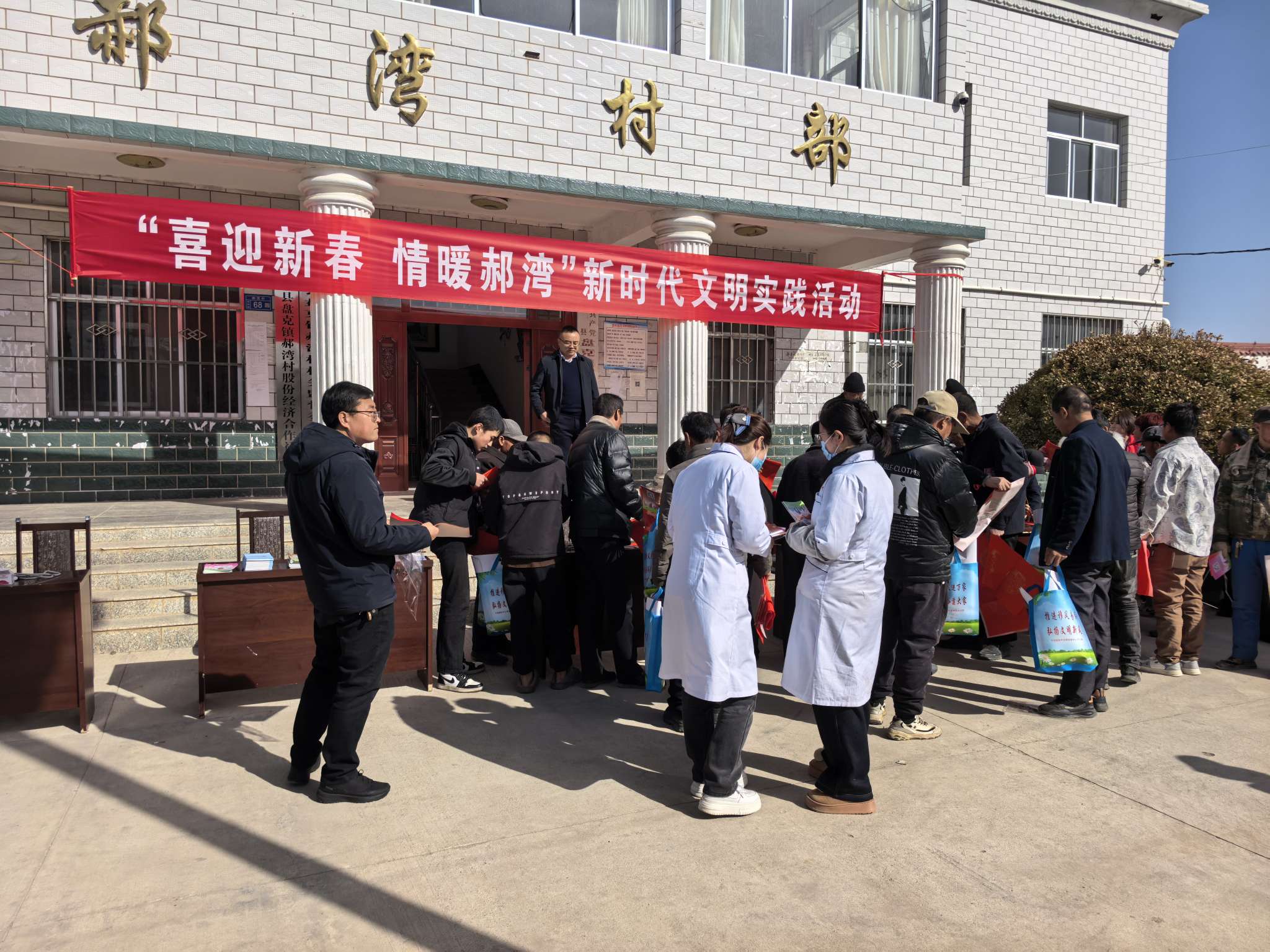 新春将至,年味渐浓。2月11日,“喜迎新春 情暖郝湾”新时代文明实践活动在盘克镇郝湾村热闹举行。志愿者把健康服务、文明新风与新春祝福送到群众家门口,用暖心行动为村民增添浓浓年味。