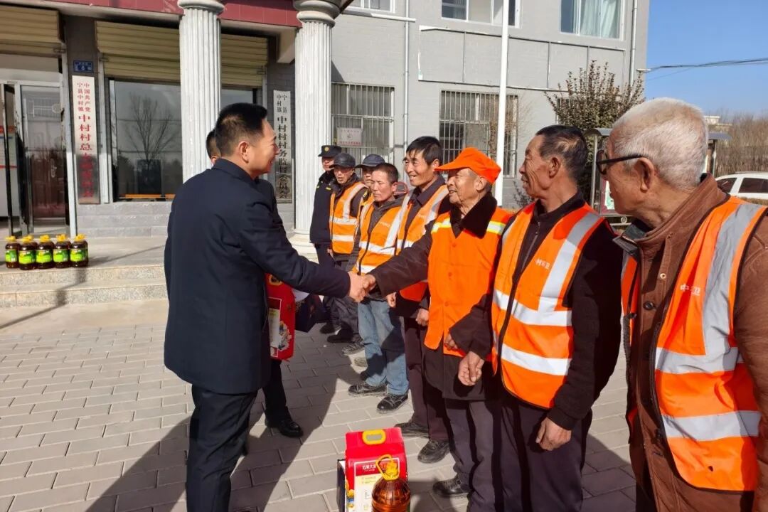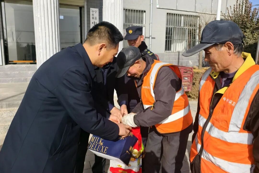 活动现场洋溢着喜庆祥和的新春氛围,大米、食用油、纯牛奶等慰问品整齐摆放,满载着中村镇对一线工作人员的牵挂与敬意。工作人员与大家一一握手交谈,并对大家一年来扎根一线、辛勤劳作表示衷心感谢,叮嘱大家在做好街区日常卫生清洁的同时,一定要注意防寒保暖和作业安全。
