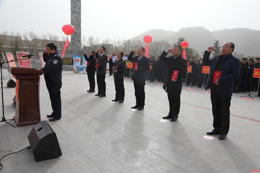参加仪式的还有县人大常委会副主任王永祥、县政协副主席李永忠,县政府党组成员、公安局长郭兴波,县法院院长杨志远。