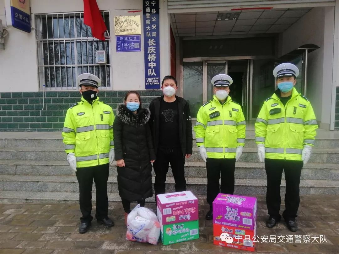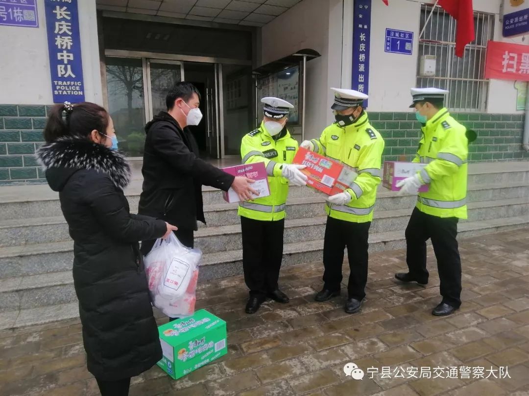 2月1日,宁县公安局交警大队长庆桥中队民警正奋战在疫情防控工作中,收到了宁县明峰建材有限公司送来的“爱心”物资,为抗击疫情注入力量。
