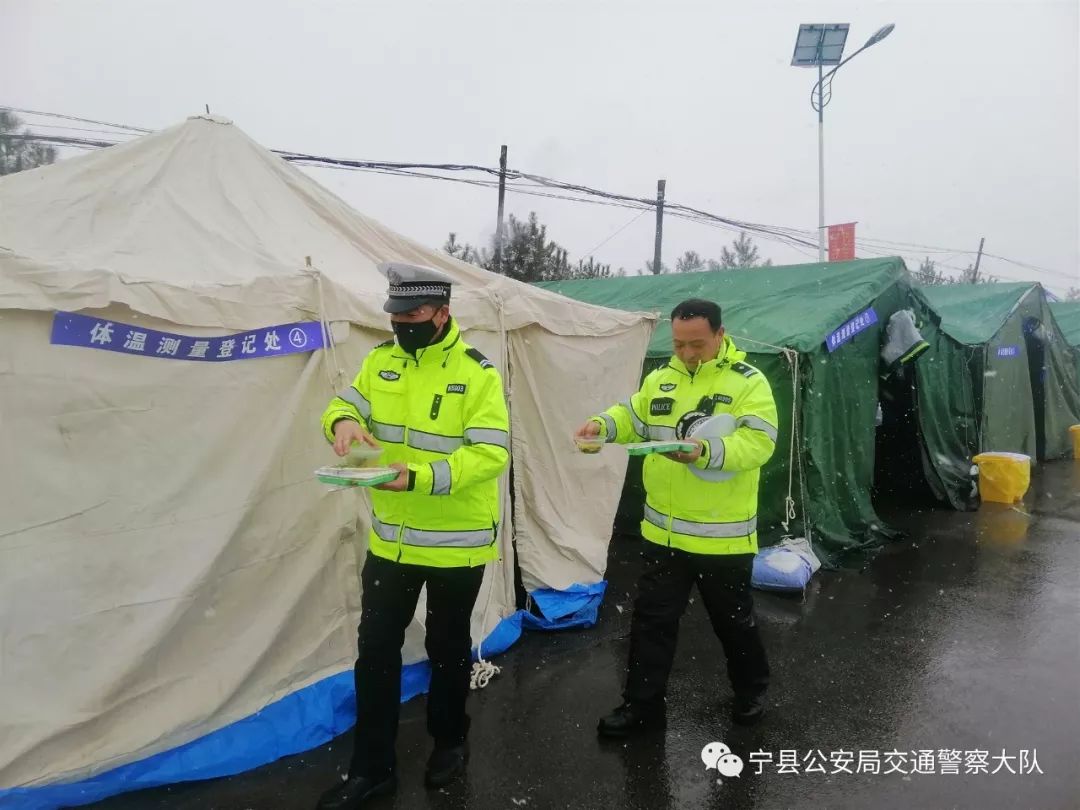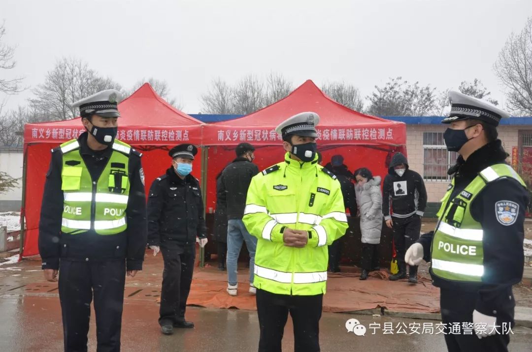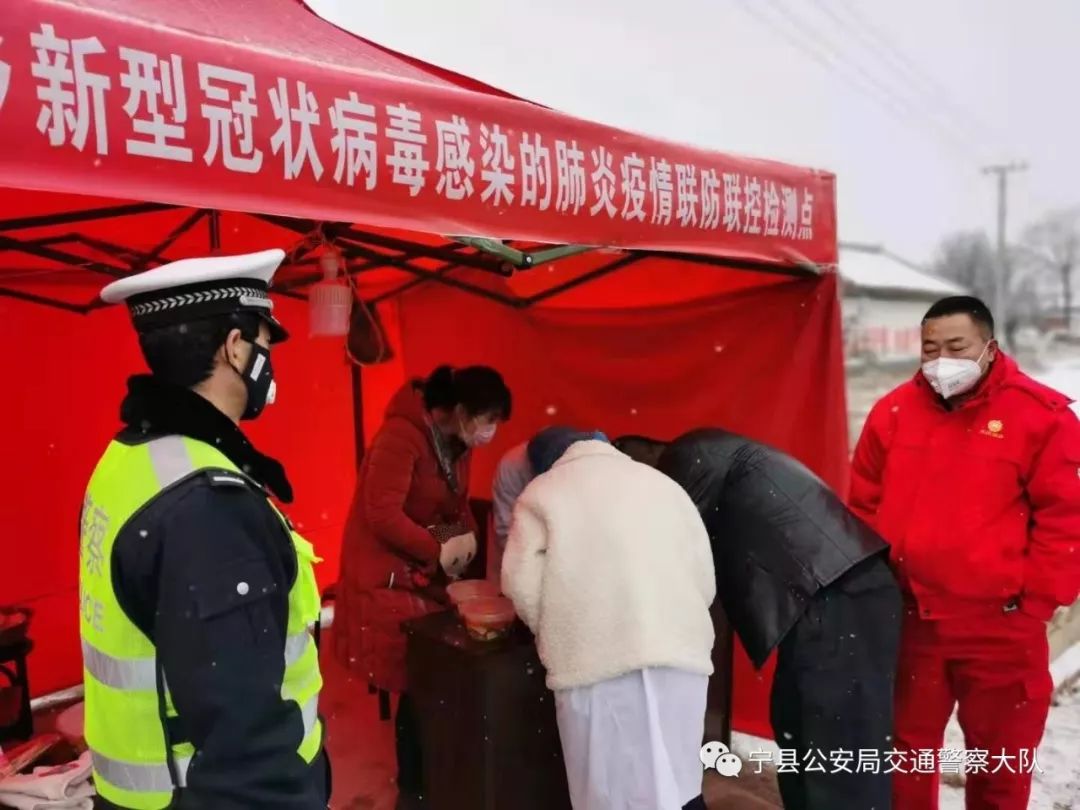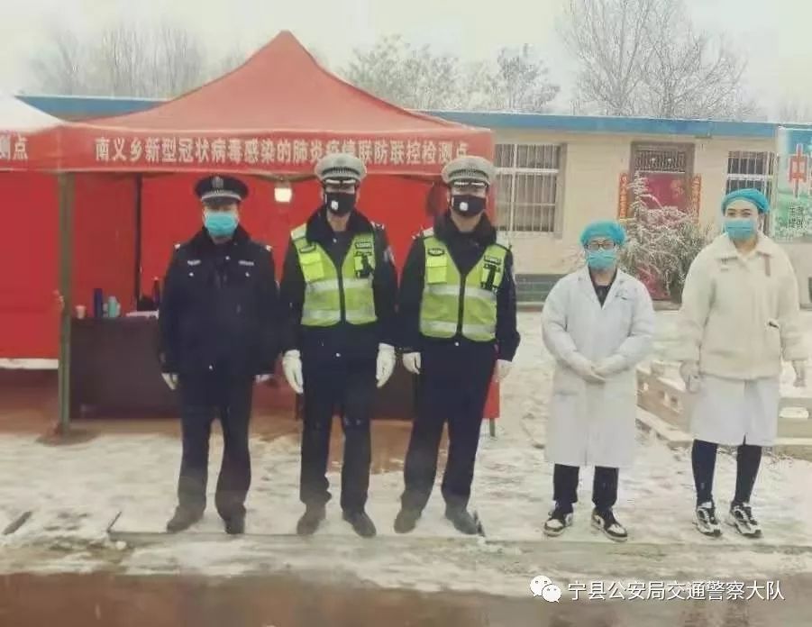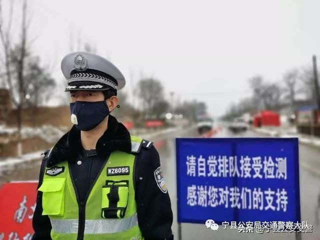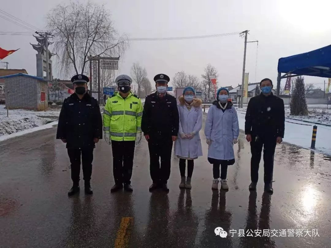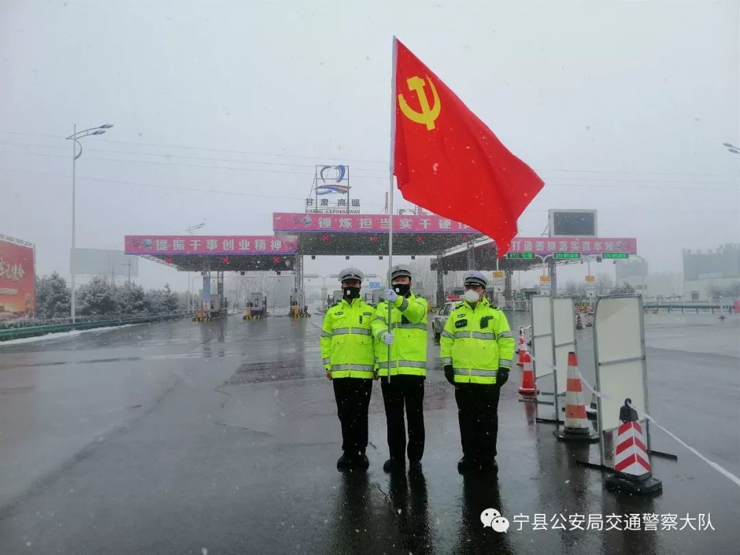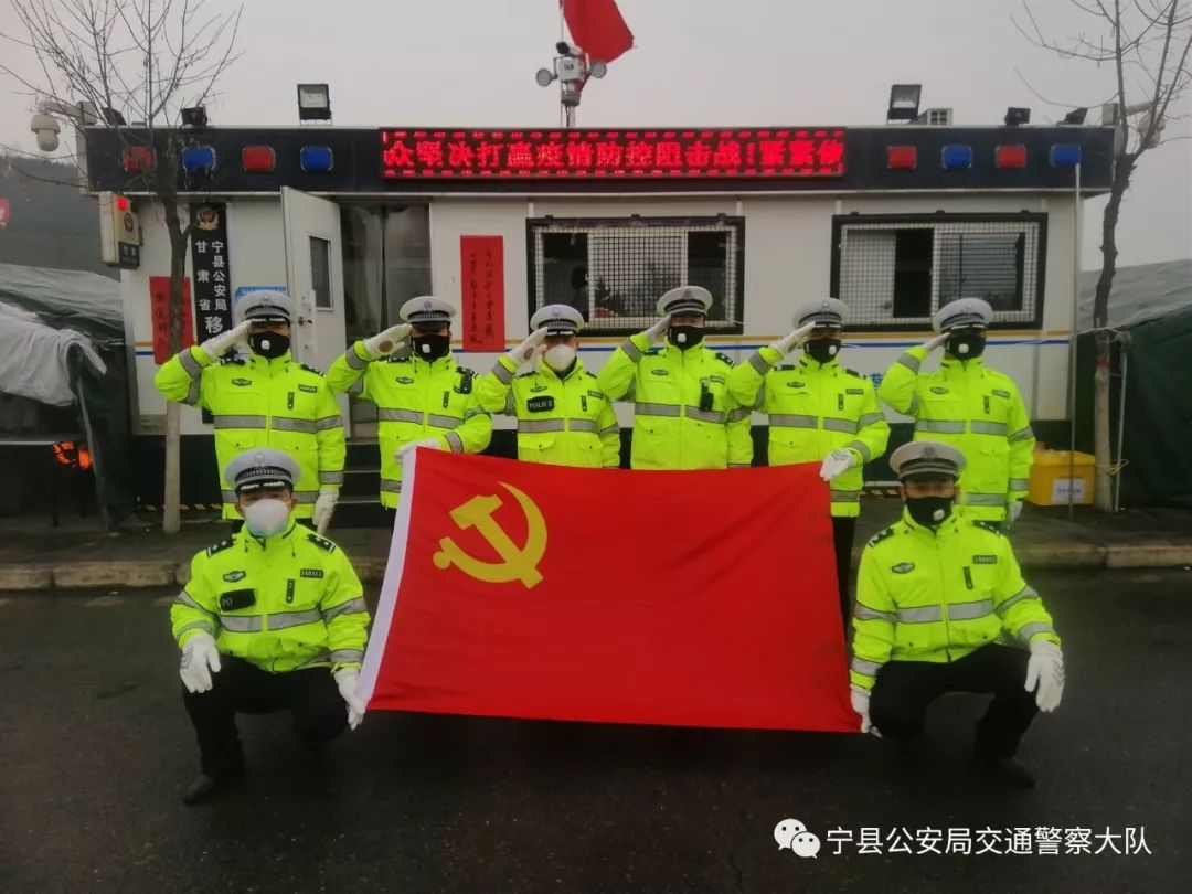 【抗击疫情 宁县公安交警在行动】警徽映初心 党旗分外红