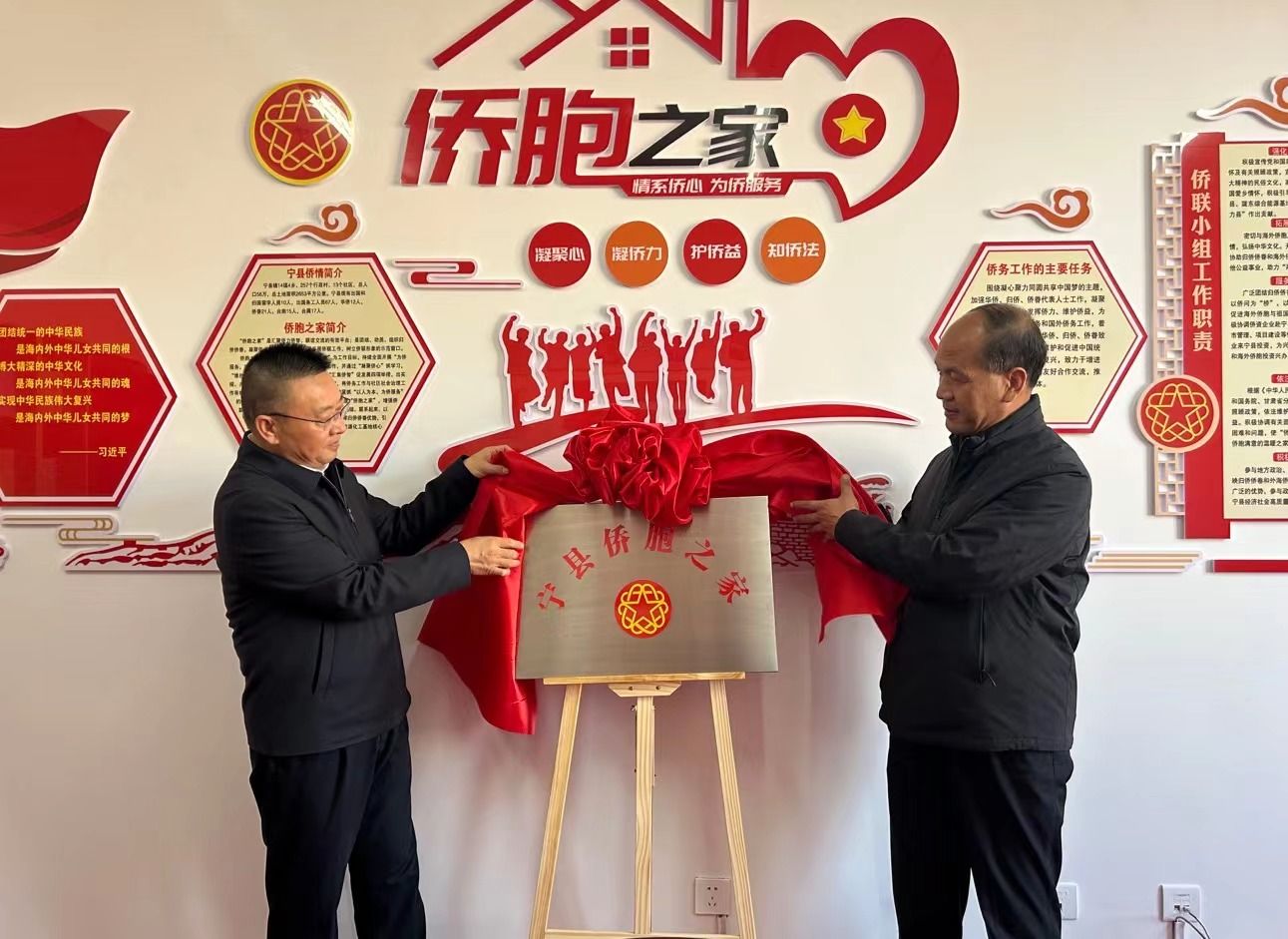 调研中,杨海军、孟乾坤共同为“宁县侨胞之家”揭牌,并对侨眷李妙巧进行慰问。