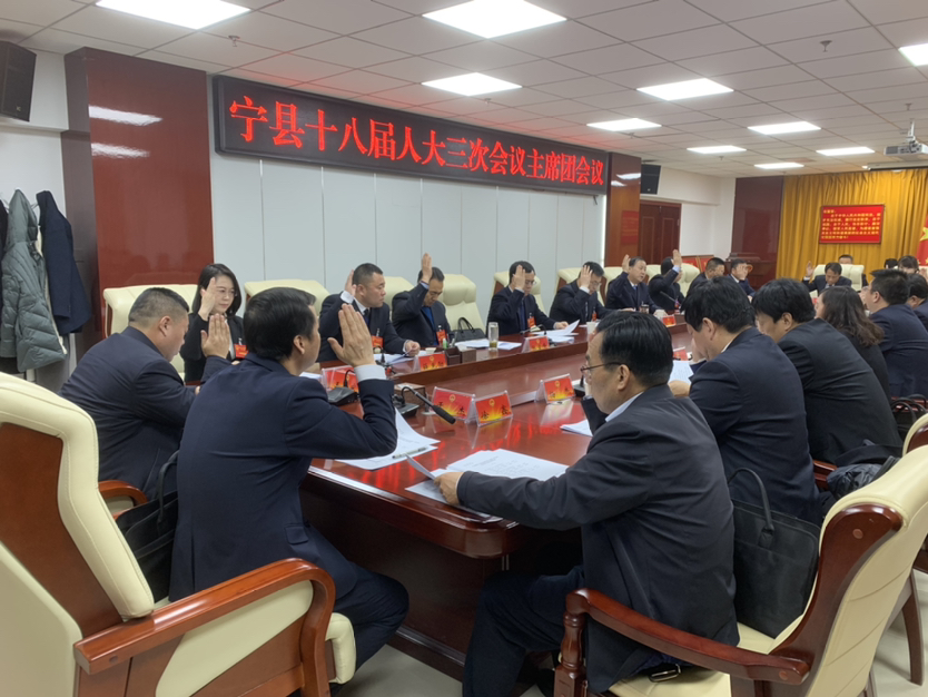 宁县第十八届人民代表大会第三次会议主席团第一次会议召开 来源:宁县融媒体中心 作者:豆睿 发布时间:2024-01-30 10:05:53 浏览次数: 次 【字体:小 大】 1月29日,宁县第十八届人民代表大会第三次会议主席团第一次会议召开。宁县人大常委会主任翟晓明主持会议。主席团成员应到40人,实到39人,符合法定人数。会议以举手表决的方式,通过了主席团会议日程(草案);大会日程(草案);大会主席团常务主席名单(草案);大会执行主席分组名单(草案);大会副秘书长名单(草案);议案、意见和建议处理办法(草案);代表提出议案截止日期的决定(草案);大会选举办法(草案)。 打印正文