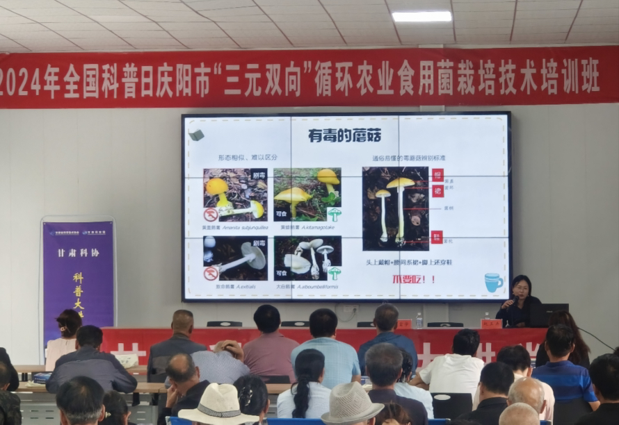 培训中,甘肃省科学院生物研究所副研究员、食用菌研究室主任赵玉卉从食用菌的种类、实用价值、产业发展现状、栽培管理技术等方面,深入浅出地阐述了食用菌产业发展前景和适用栽培技术。