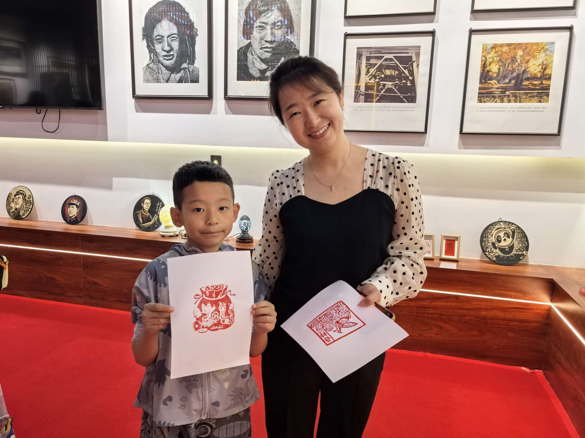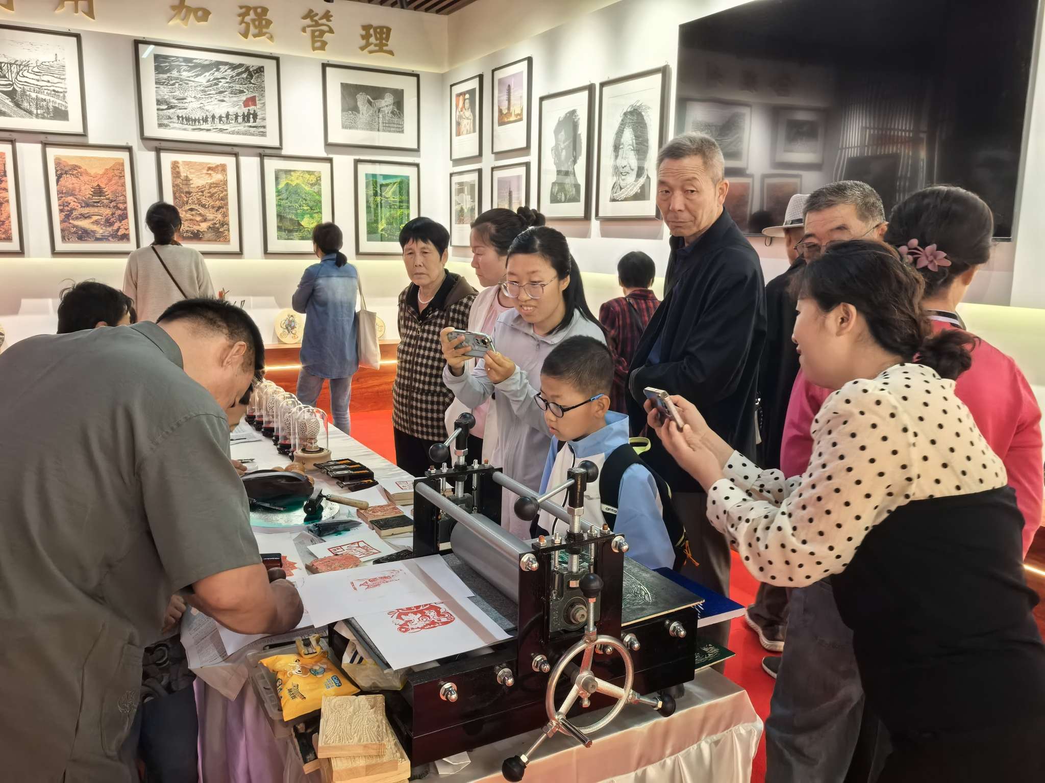 为增强互动体验,展馆内还设置了游客体验区。游客在非遗传承人的指导下,亲手尝试版画拓印,沉浸式感受传统工艺的制作魅力。