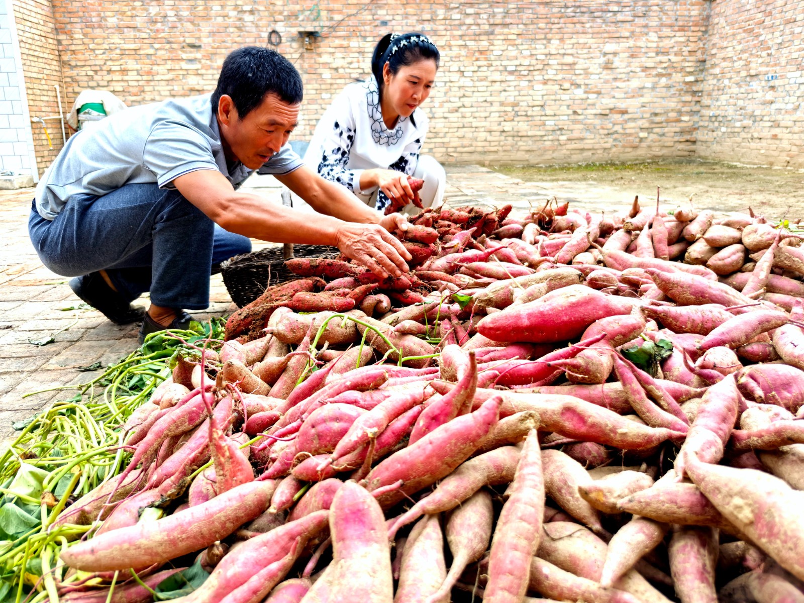 春荣镇王台村村民穿梭在田埂间,正忙着集中采收270亩红薯,一行行饱满鲜红的红薯破土而出,格外喜人;