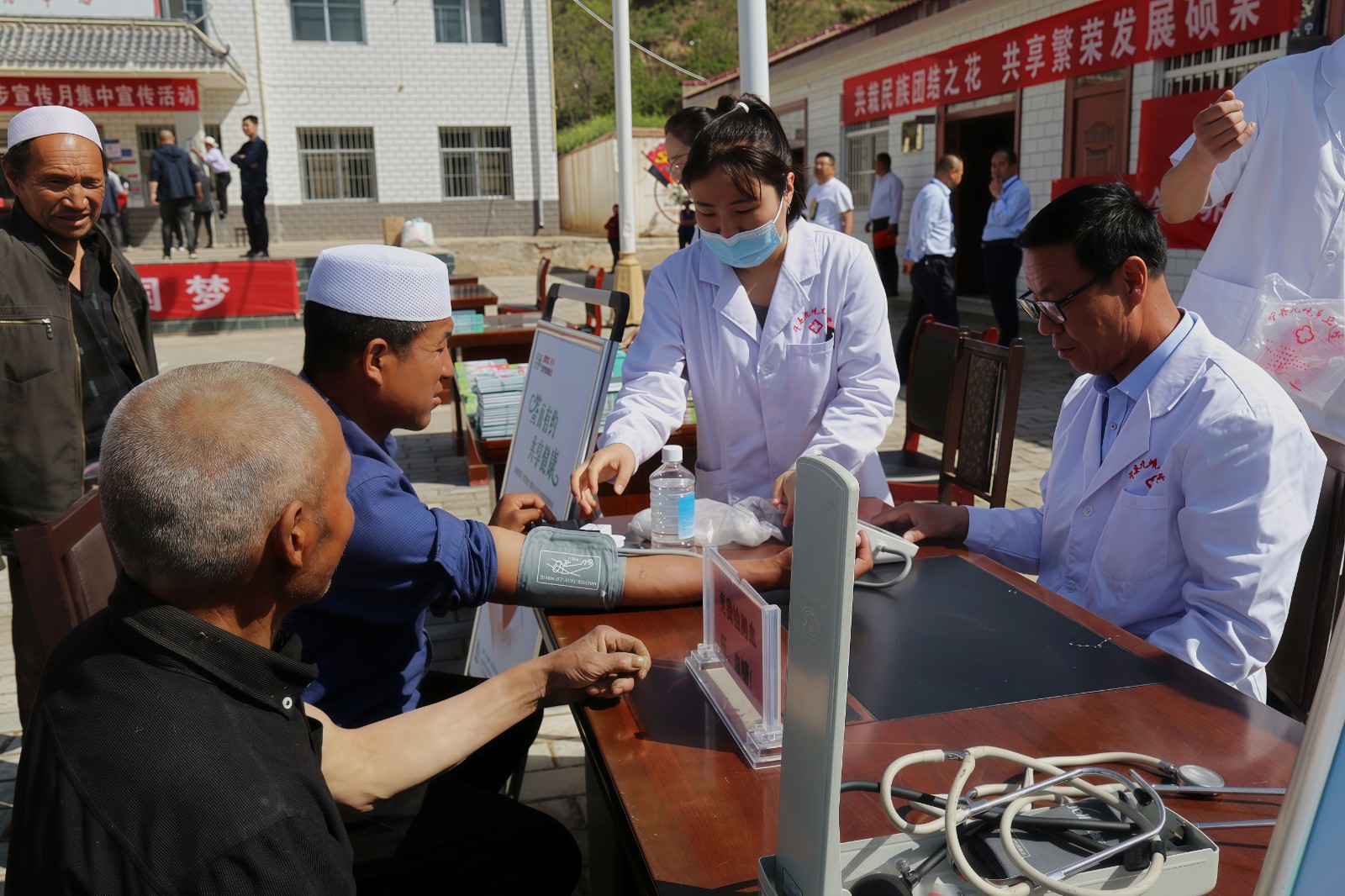 宁县九岘卫生院在左家川村为群众义诊 张虎奎摄