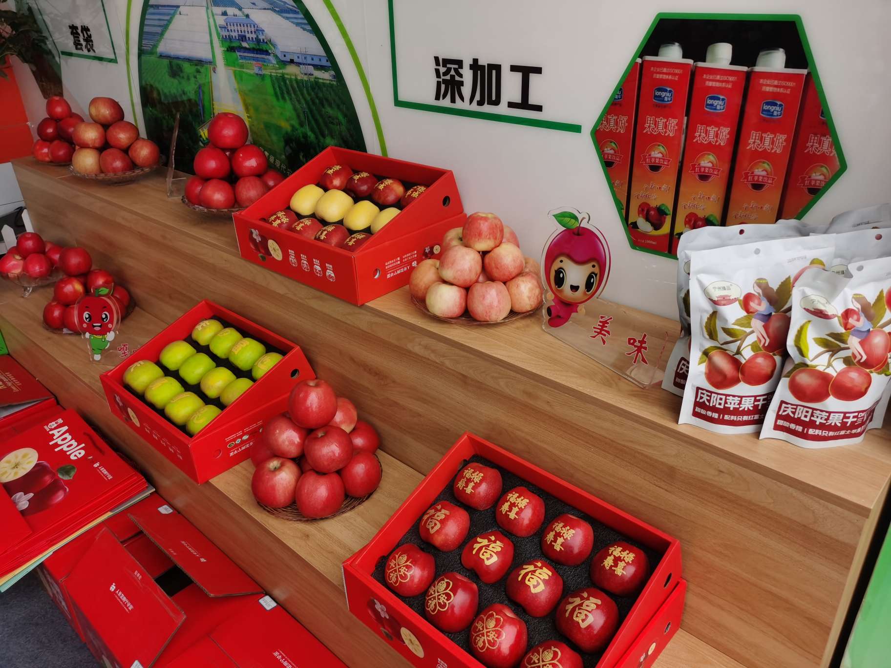 在展陈方面,宁县展馆精心布置,集中展出了瑞雪、爵士、红星、皇后、秦脆、米奇拉、红思尼克、宫崎富士、烟富3号等十余种本地优质苹果,吸引了众多参会者驻足品鉴。同时,展馆内通过视频展示、现场讲解以及背景资料介绍等多种形式,全面呈现了宁县苹果从种植到销售“科技赋能”“产业富民”的全产业链发展成果。