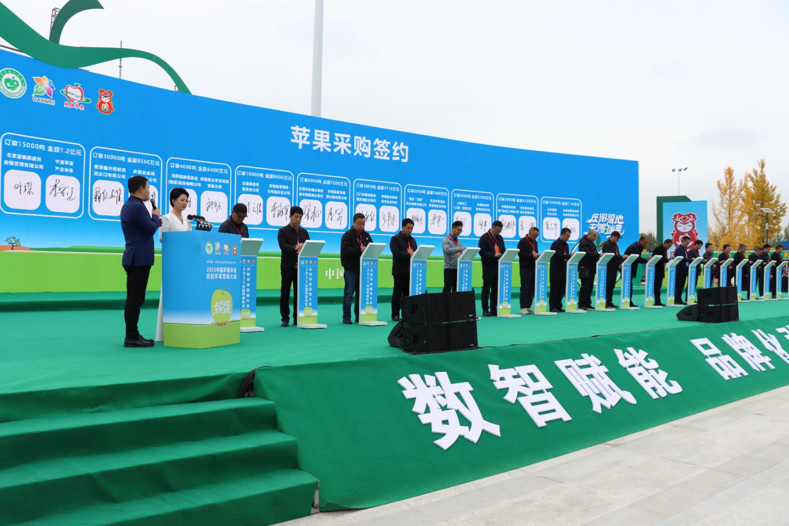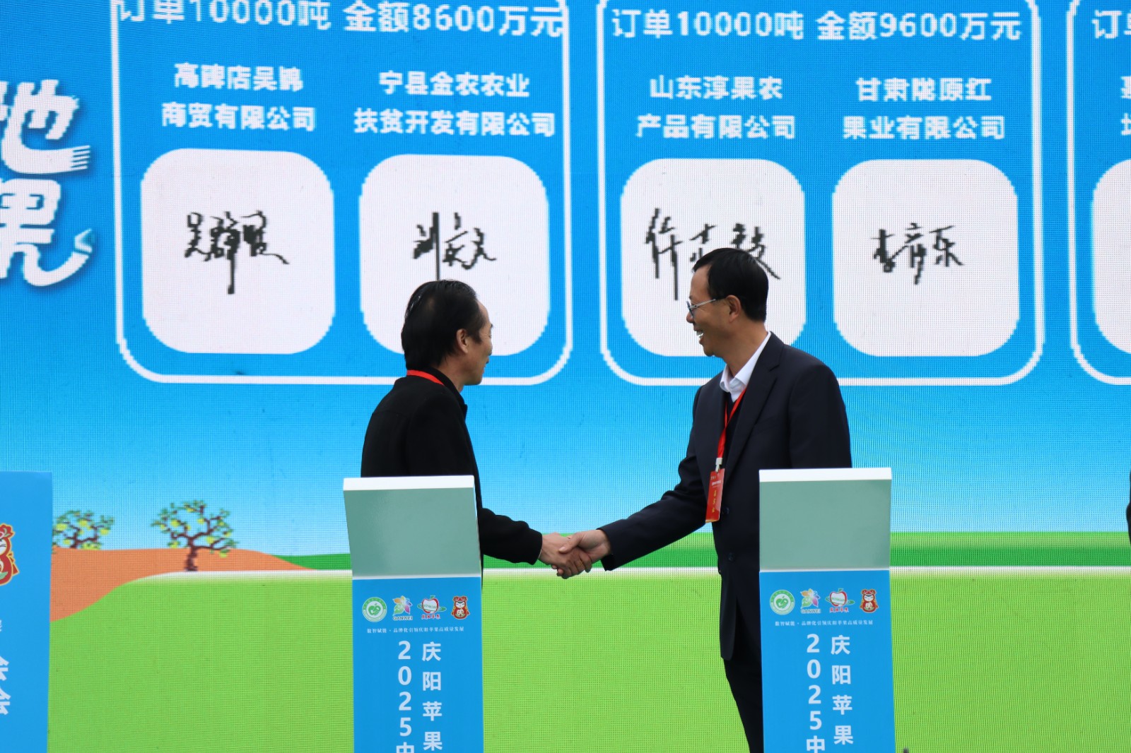 在当天的大会上,宁县苹果产业协会与北京源泰鼎盛供应链管理有限公司签订了总量15000吨、价值1.2亿元的苹果销售订单;宁县金农农业扶贫开发有限公司也与高碑店吴锦商贸有限公司签订了总量10000吨、价值8600万元的合作协议。这些订单的签订,不仅进一步拓宽了宁县优质果品的销售渠道,也为当地构建现代化产业体系、推动县域经济高质量发展注入了强劲动能。
