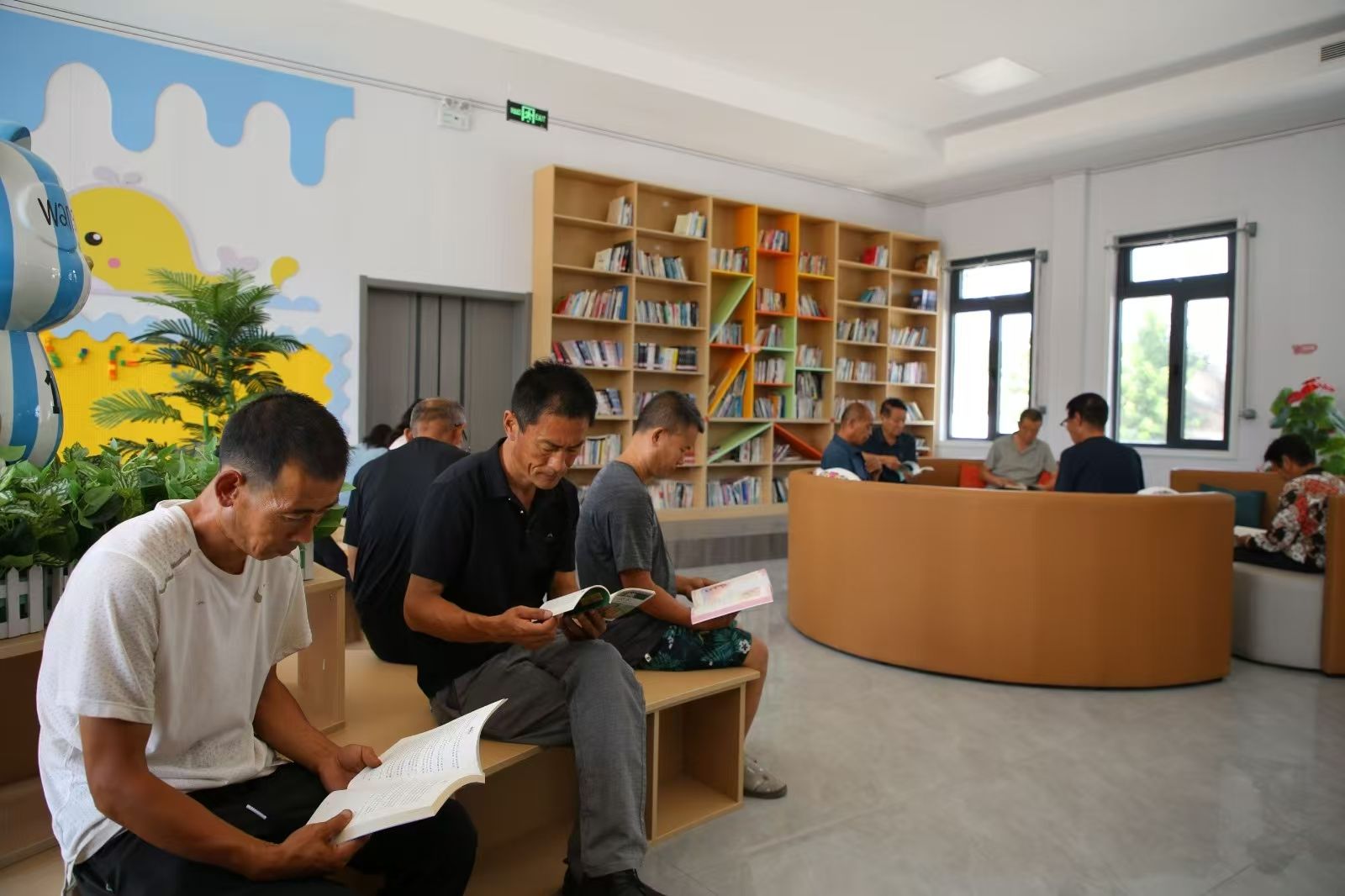 村民在新建的农家书屋读书