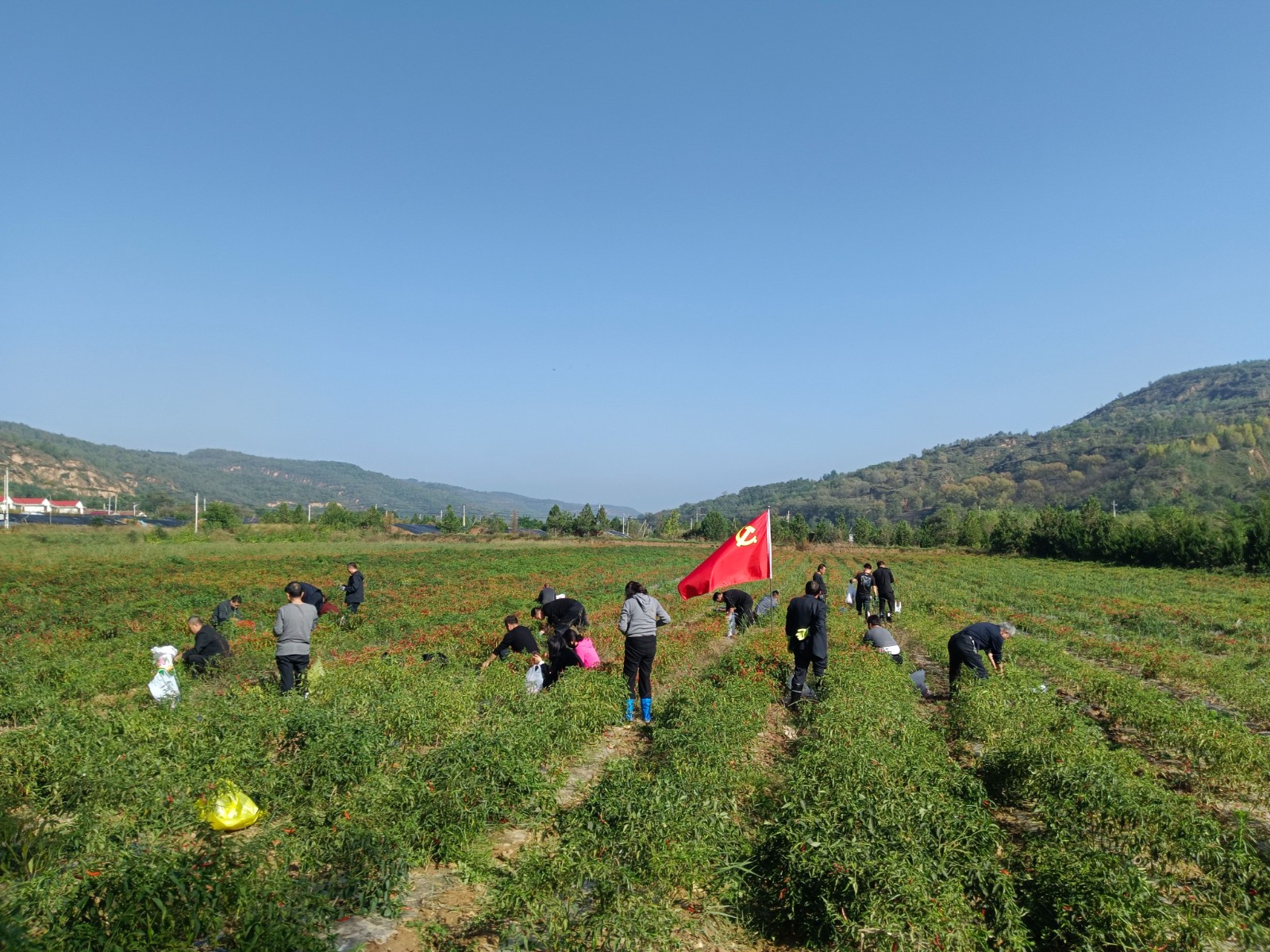 宁县党员干部在湘乐镇连片辣椒种植基地采摘辣椒