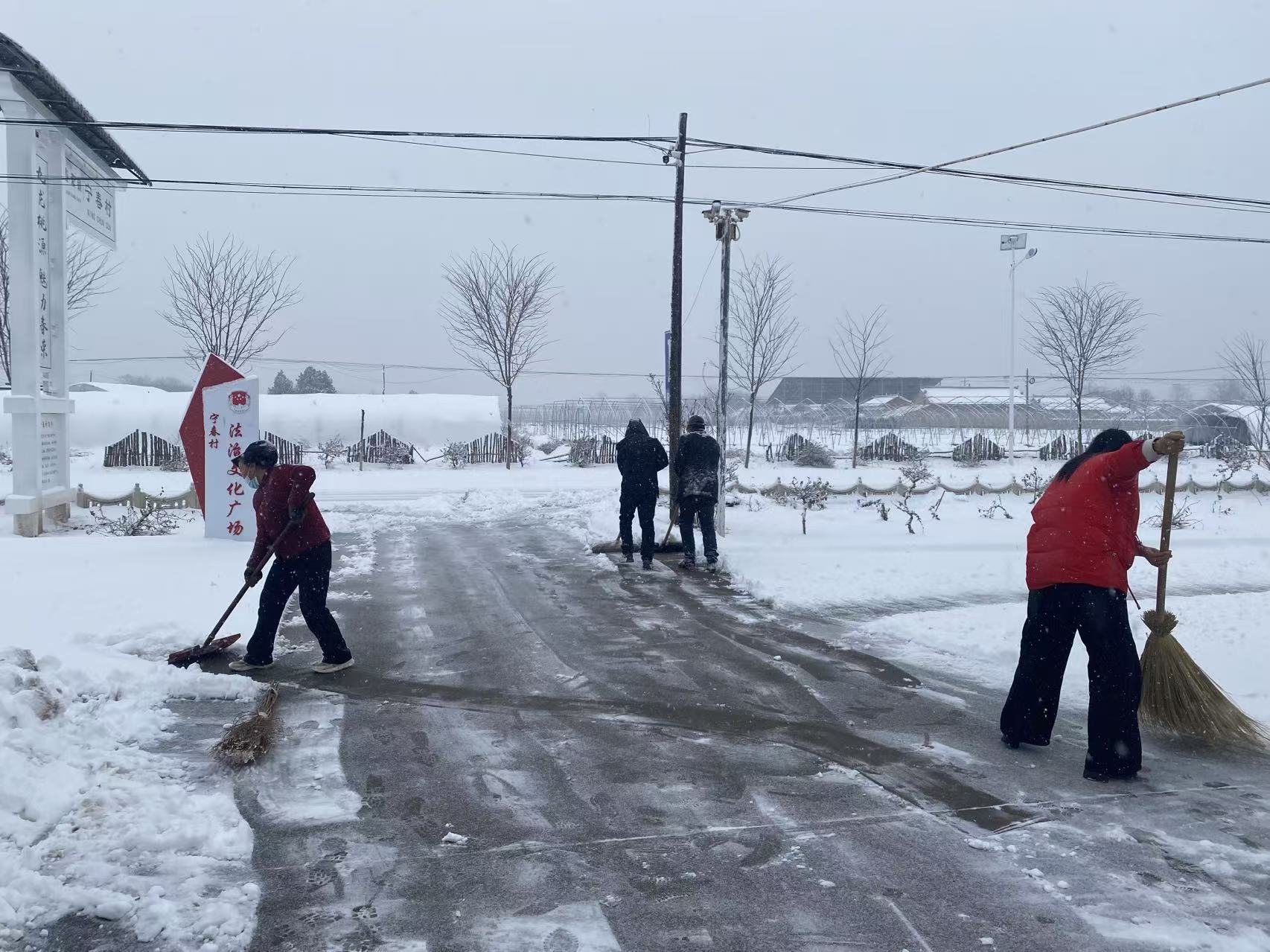 春荣镇宁春村组织村民对村道积雪进行清除