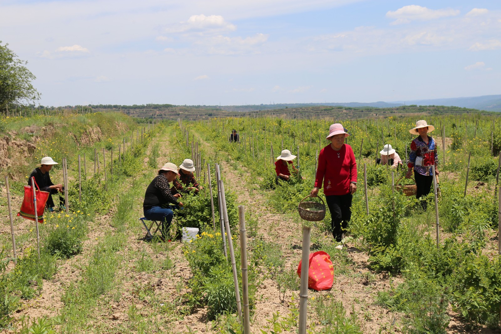 宁县春荣镇村民正在采摘金银花 张伟摄