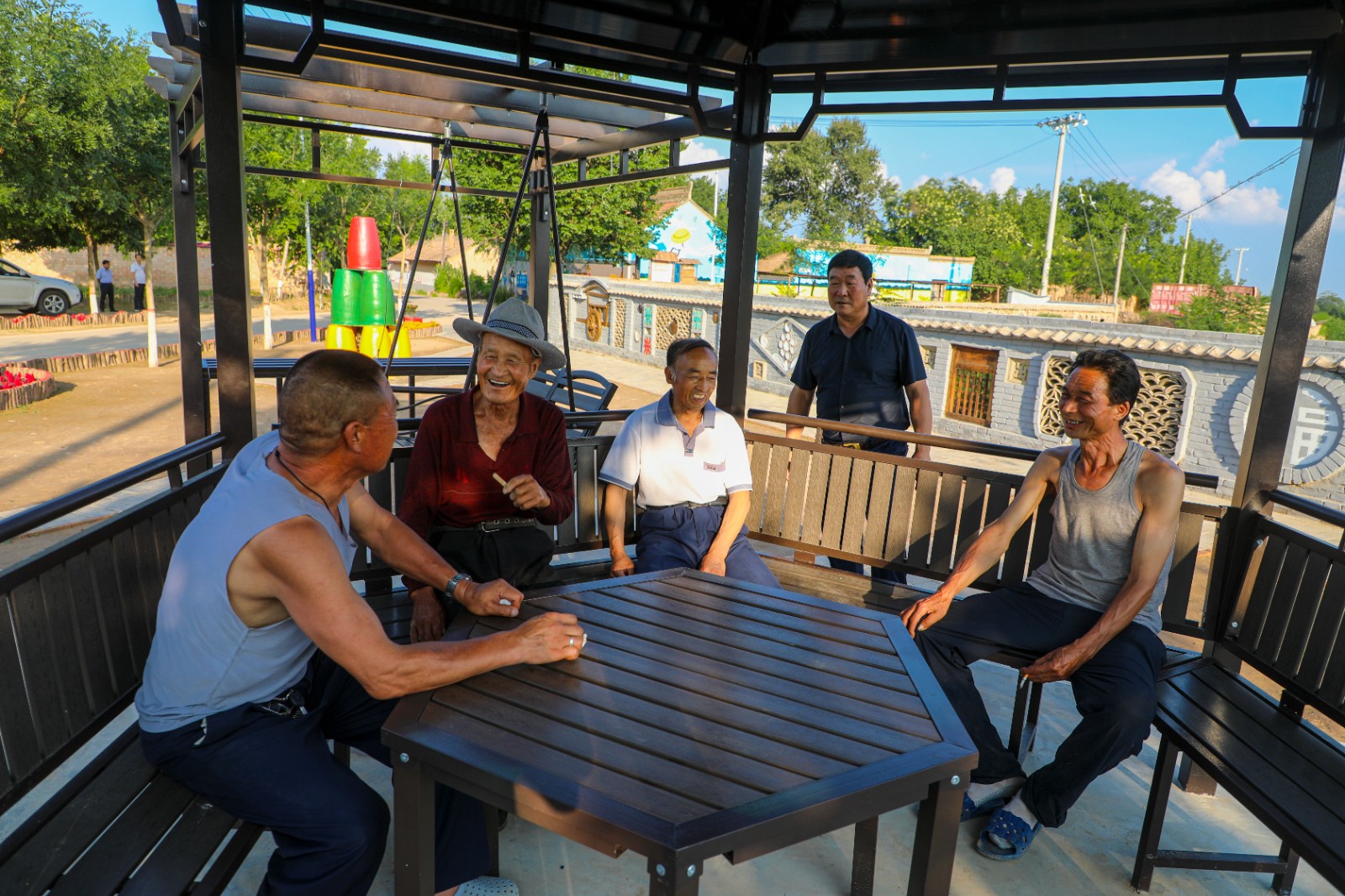 新宁镇巩吕村村民正在村上新修的亭子休息 俄少飞摄