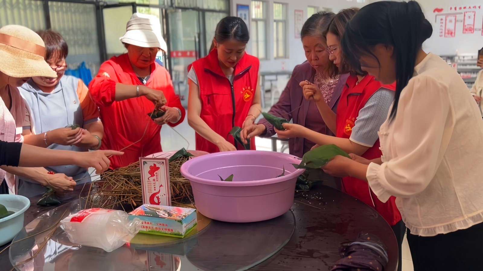 群众在新时代文明实践站一起包粽子,感受传统节日氛围