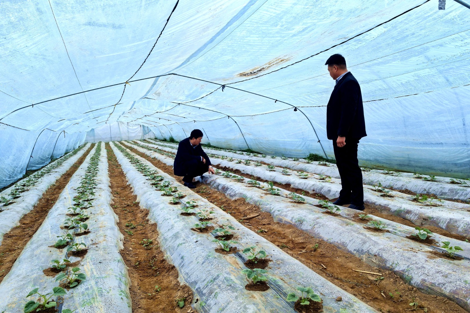 县乡干部正在赵勇清的香瓜大棚开展技术指导