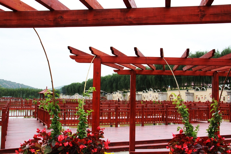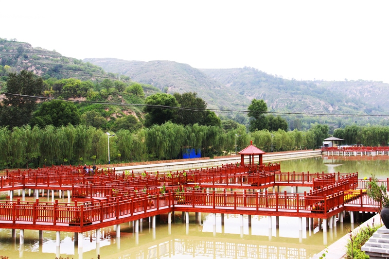 玫红着的金枣,竞相开放的鲜花,游鱼戏水的池塘,设施齐全的水上乐园,乡愁里牛车、土推车、碾盘、磨盘等生活生产用具,时令果蔬,泛黄糜谷,青山绿水,蓝天白云,清新空气,还有农家乐里特色的砂锅炖土鸡块泡死面饼子和义渠文化宴,使田园风光优美,生态风光旖旎的甘肃省宁县春荣镇王台村蟠溪生态景区,在“双节”莅临之时,又迎来了它的旅游黄金季。