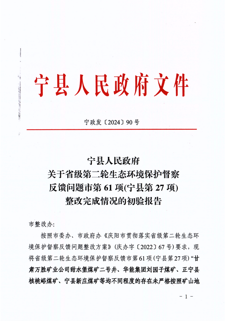 索引号: 621026zrzyj000/20240927-00055 发布机构: 生效日期: 2024-09-27 废止日期: 文 号: 所属主题: 行政检查 宁县人民政府关于省级第二轮生态环境保护督察反馈问题市第 61 项(宁县第 27 项)整改完成情况的初验报告 来源: 发布时间:2024-09-27 浏览次数: 次 【字体:小 大】 【打印正文】 分享到: 【字体:小 大】